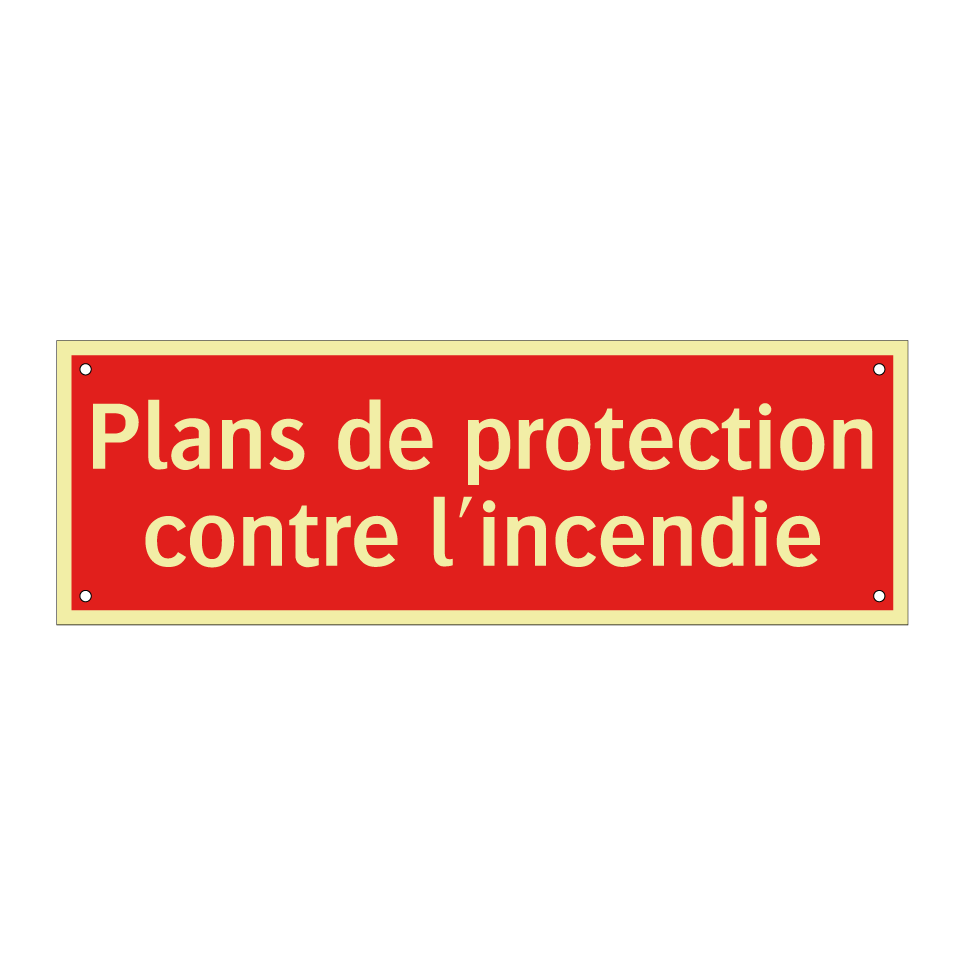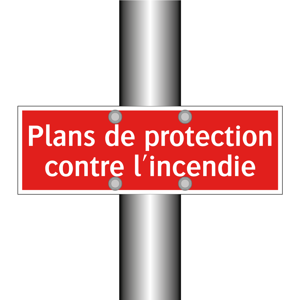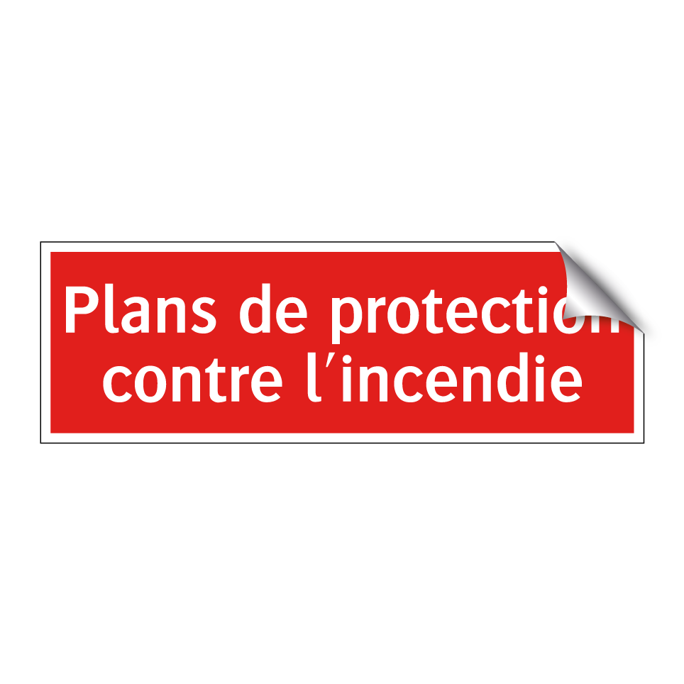 Panneau de signalisation incendie avec le texte Plans de protection contre l'incendie