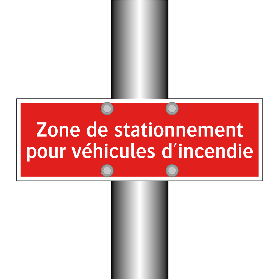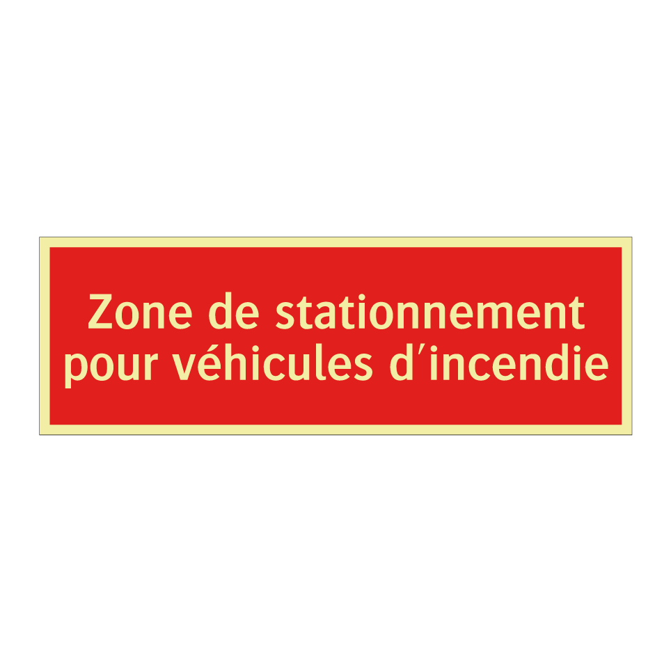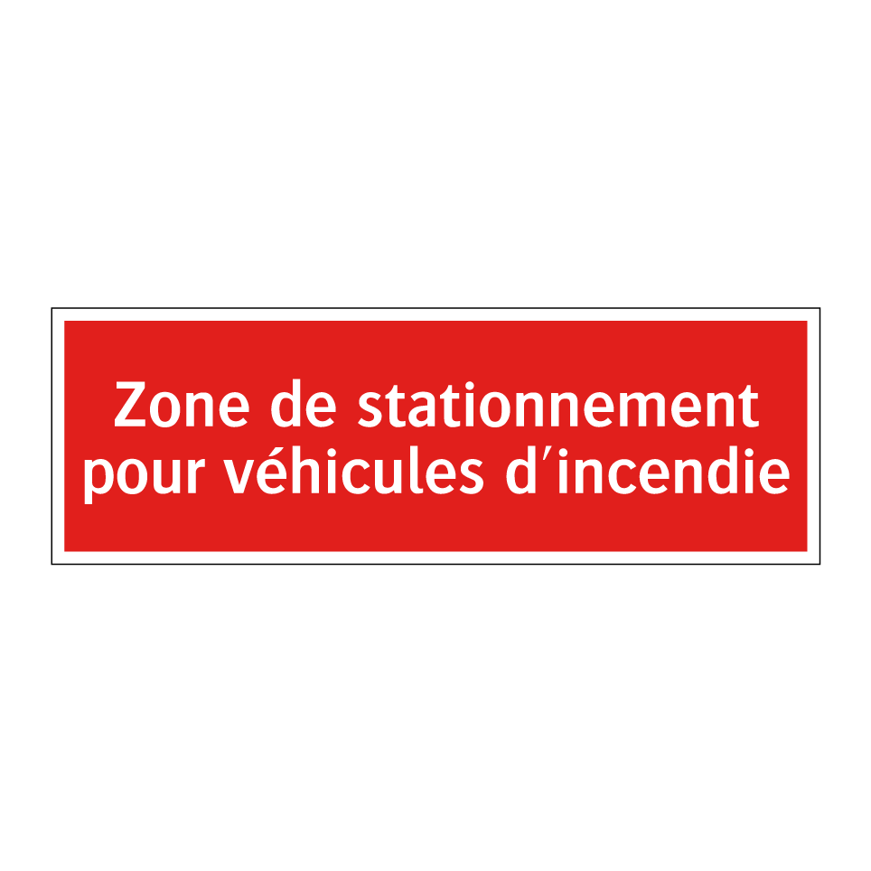 Panneau de signalisation incendie avec le texte Zone de stationnement pour véhicules d'incendie