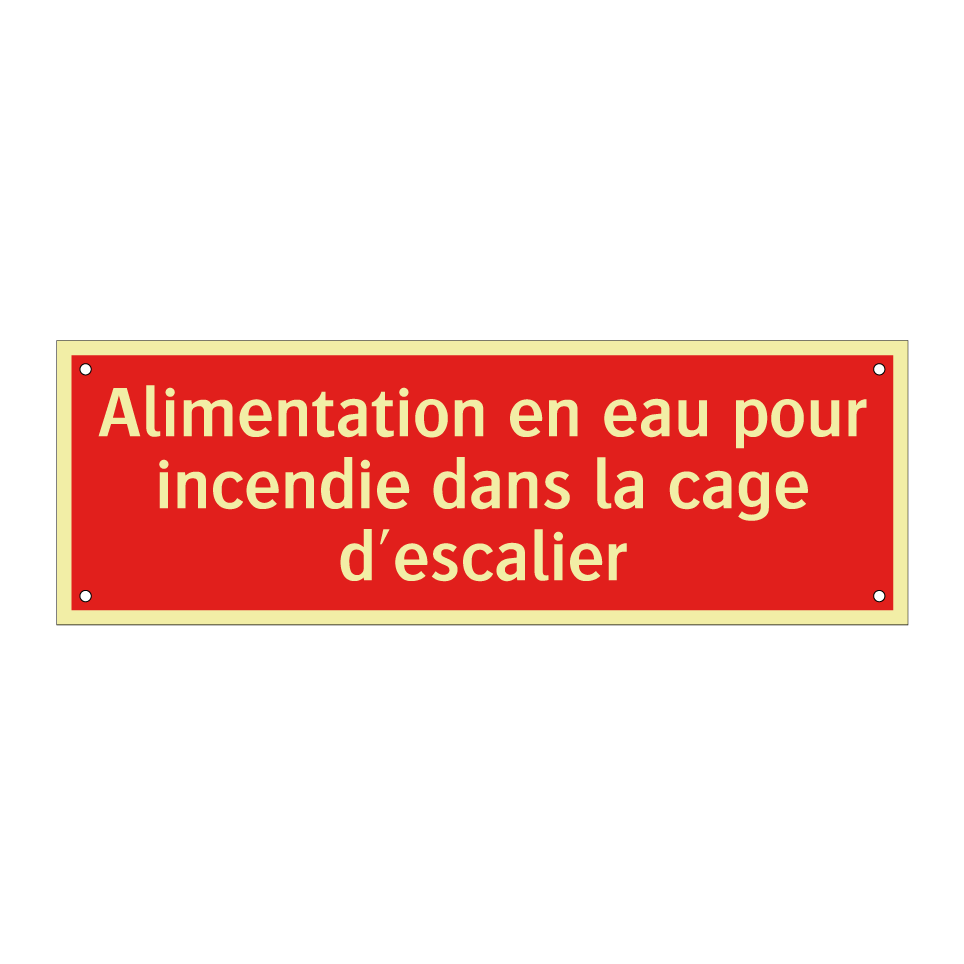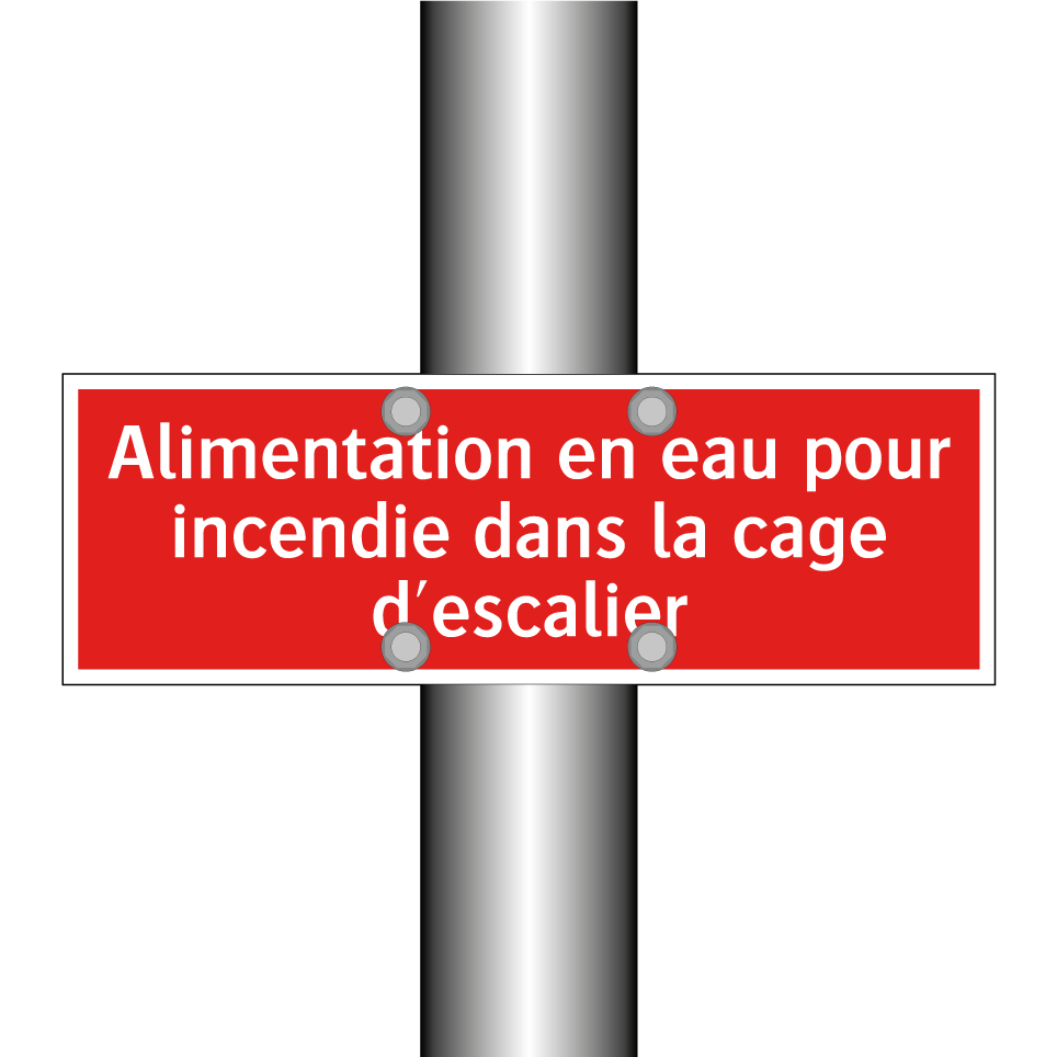 Panneau de signalisation incendie avec le texte Alimentation en eau pour incendie dans la cage d'escalier