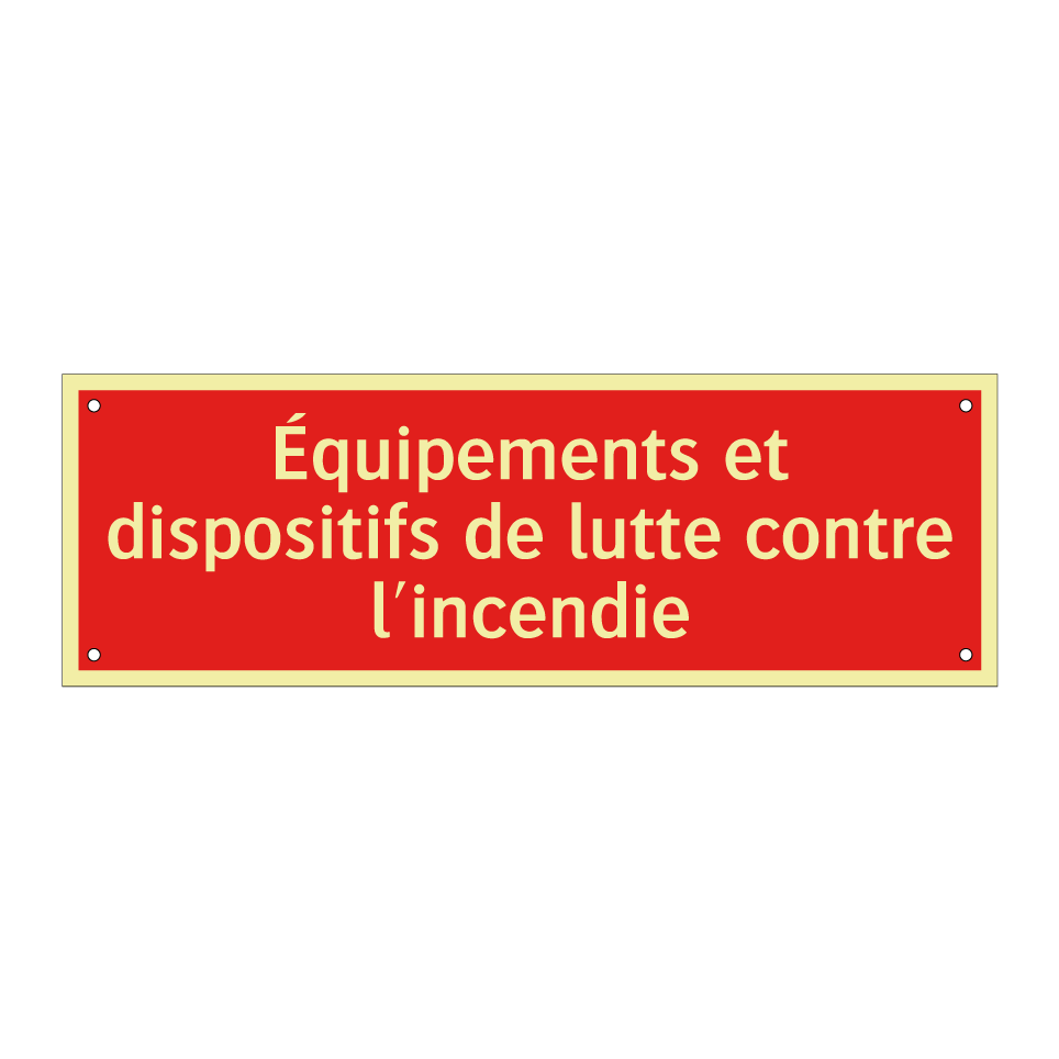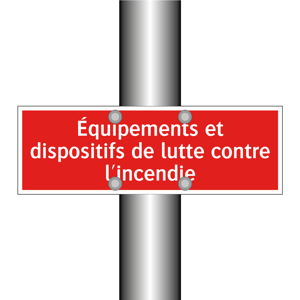 Panneau de signalisation incendie avec le texte Équipements et dispositifs de lutte contre l'incendie