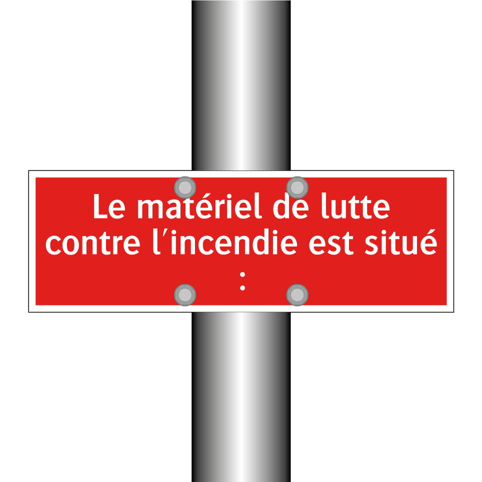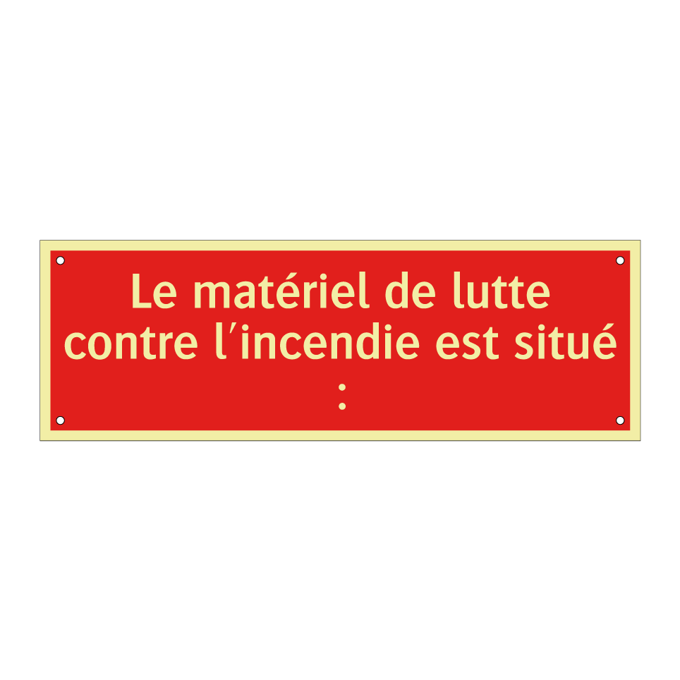 Panneau de signalisation incendie avec le texte Le matériel de lutte contre l'incendie est situé :