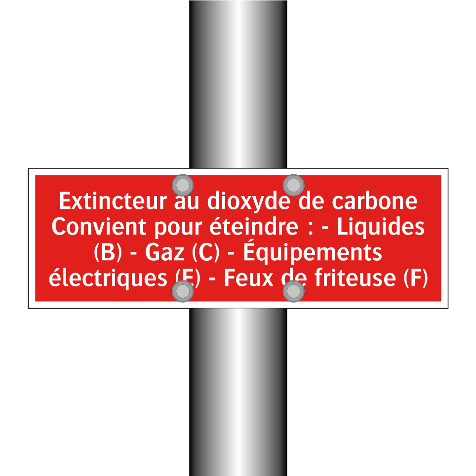 Cette pancarte de sécurité incendie est idéale pour être placée dans des environnements où des extincteurs au dioxyde de carbone sont utilisés. Elle est essentielle dans les cuisines professionnelles, les laboratoires, et les zones industrielles où des liquides inflammables, des gaz, des équipements électriques ou des feux de friteuse peuvent être présents. Grâce à son design rouge vif et son texte blanc, elle assure une visibilité optimale, facilitant une intervention rapide en cas d'urgence. Installez-la près des extincteurs pour garantir une identification immédiate et renforcer la sécurité de votre espace.