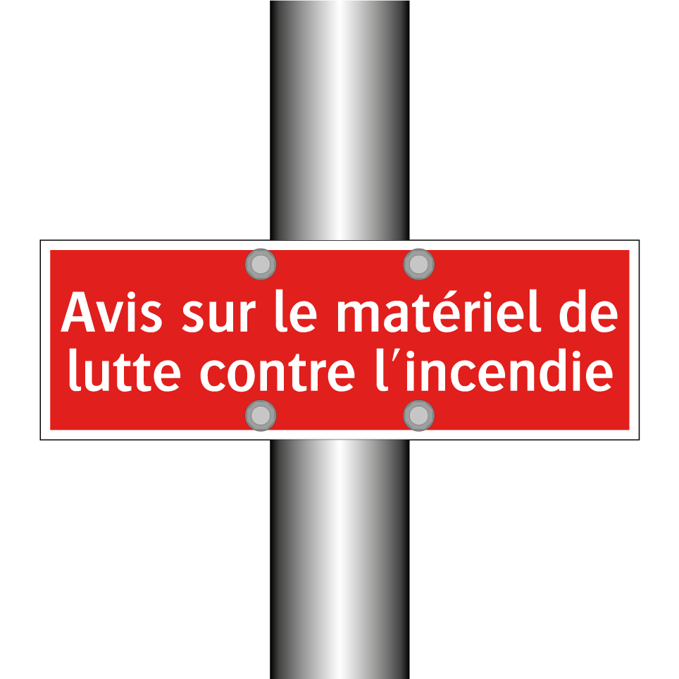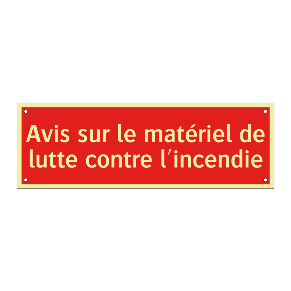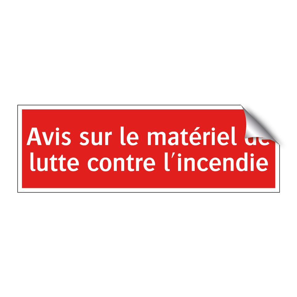 Panneau de signalisation incendie avec le texte Avis sur le matériel de lutte contre l'incendie