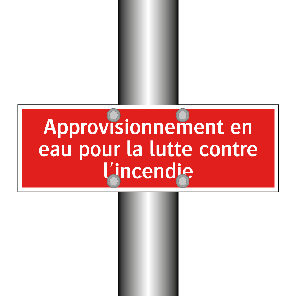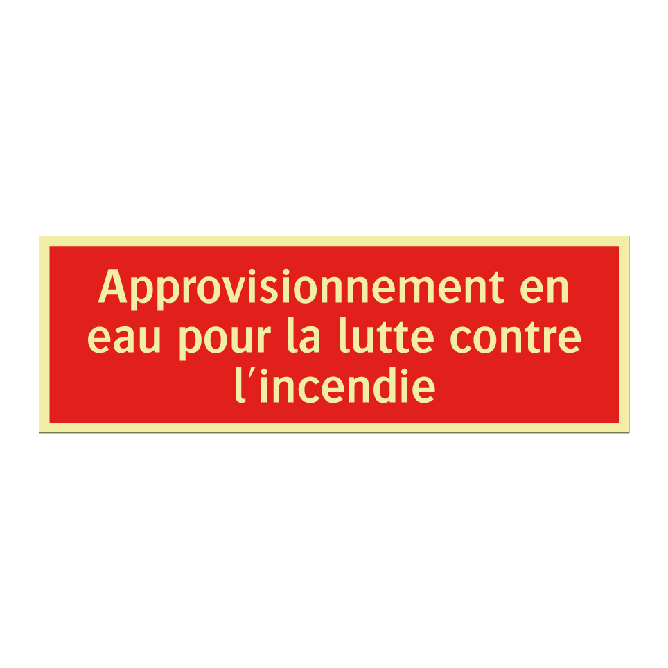 Panneau de signalisation incendie avec le texte Approvisionnement en eau pour la lutte contre l'incendie