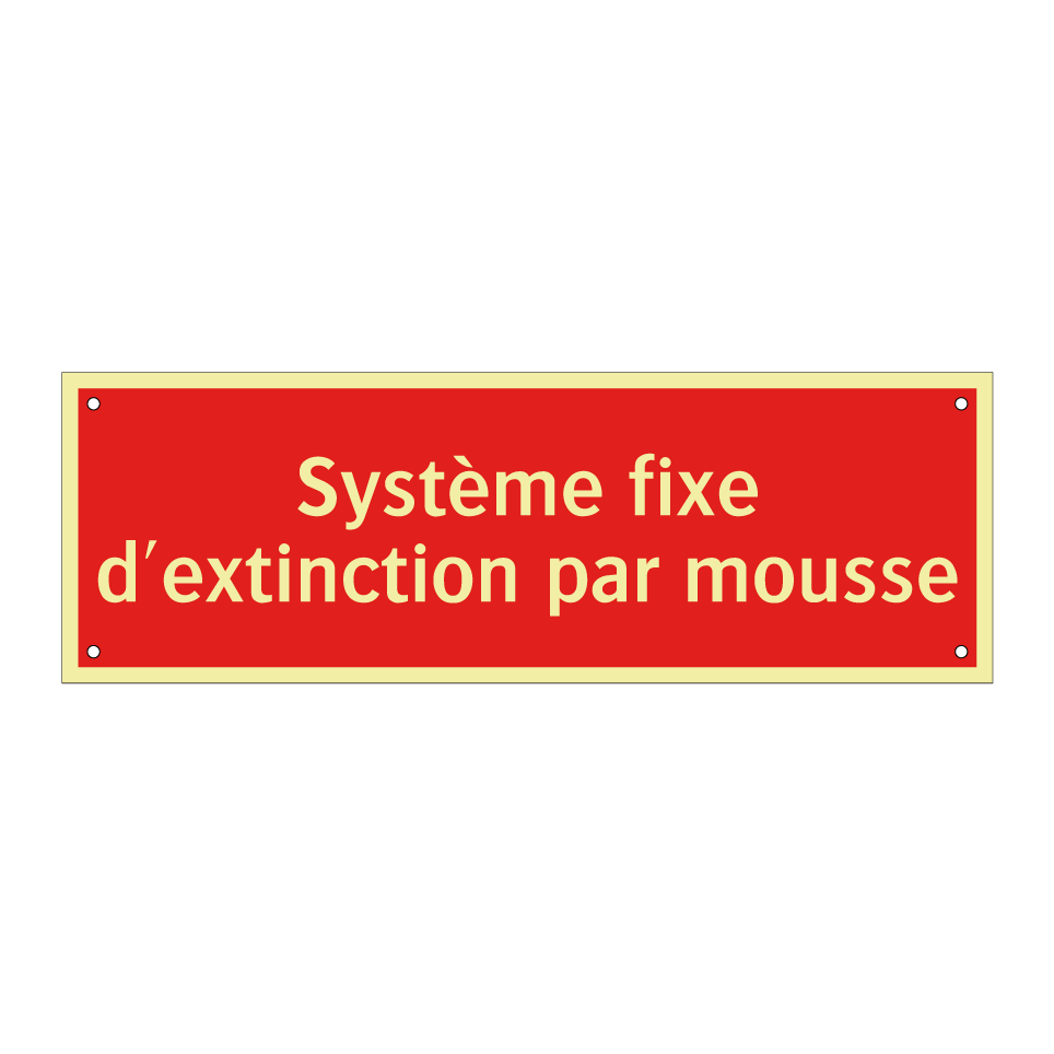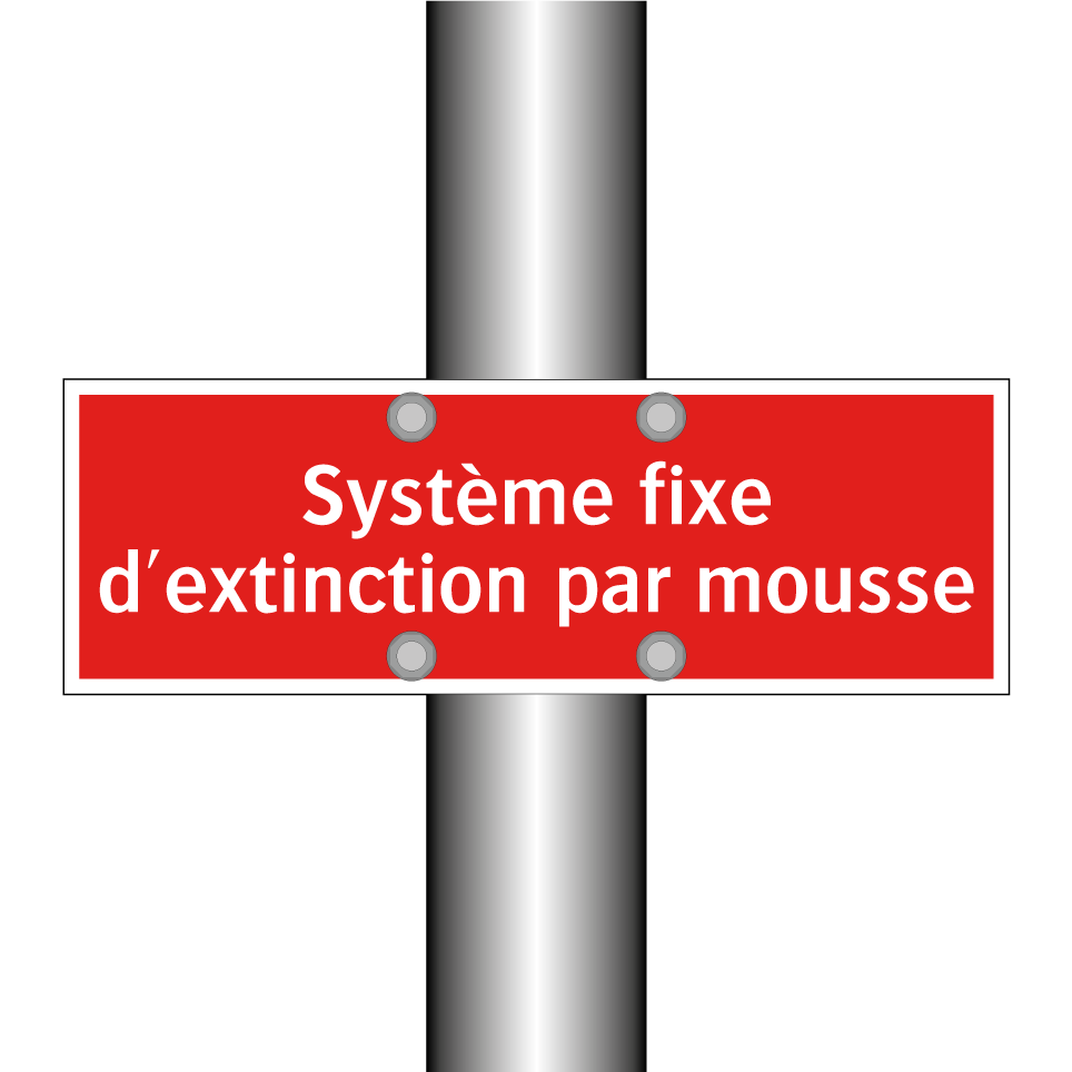 Panneau de signalisation incendie avec le texte Système fixe d'extinction par mousse