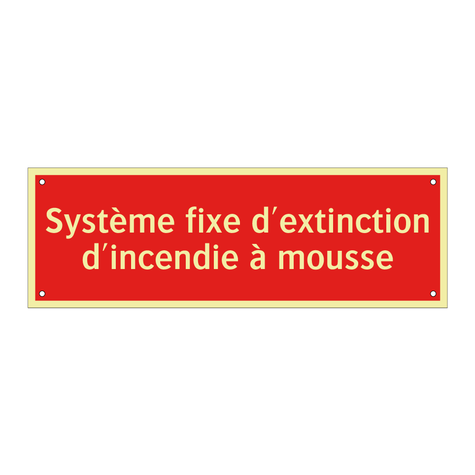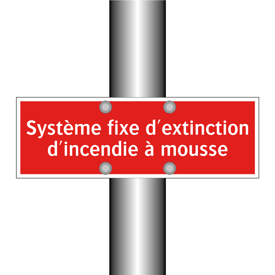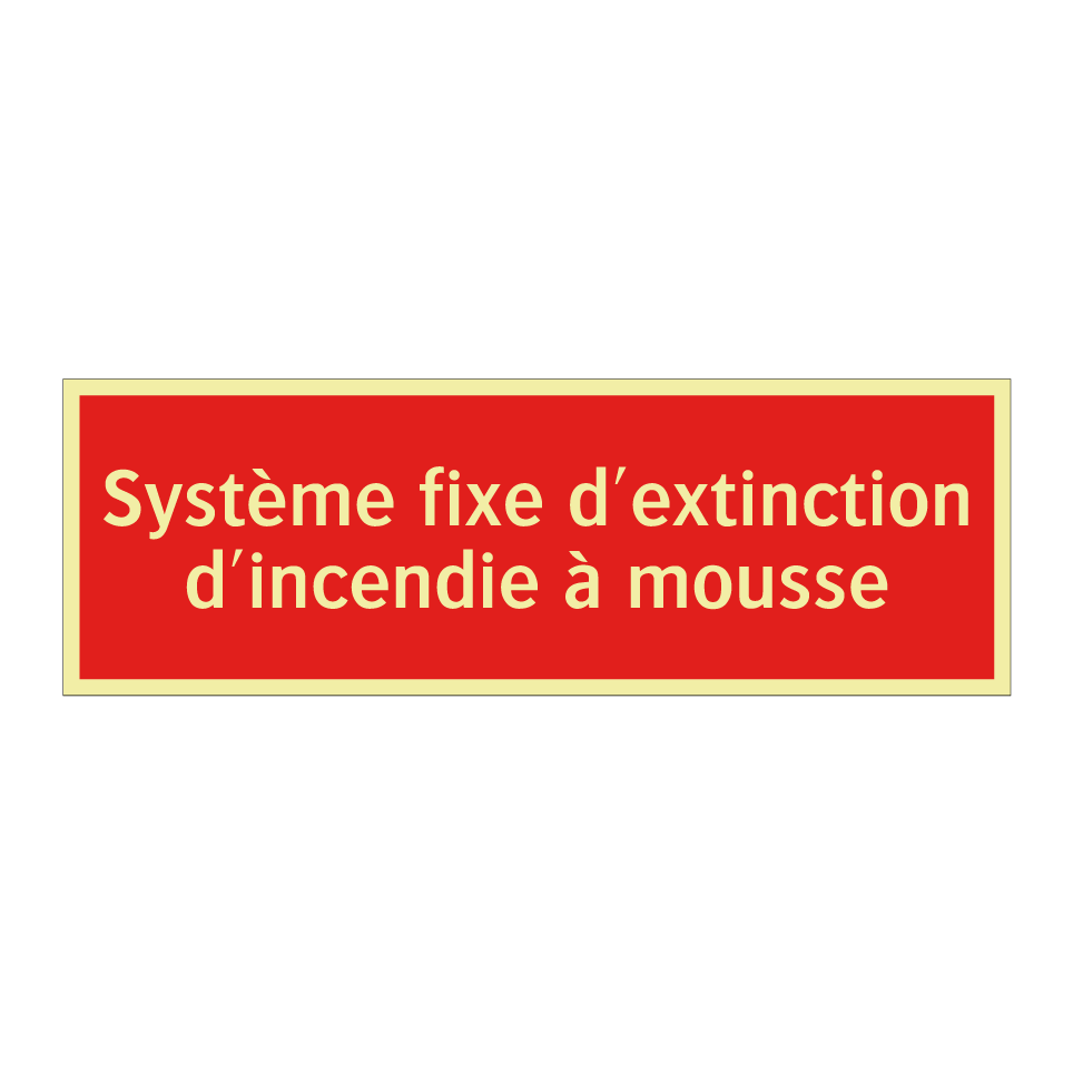 Panneau de signalisation incendie avec le texte Système fixe d'extinction d'incendie à mousse