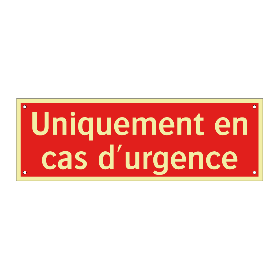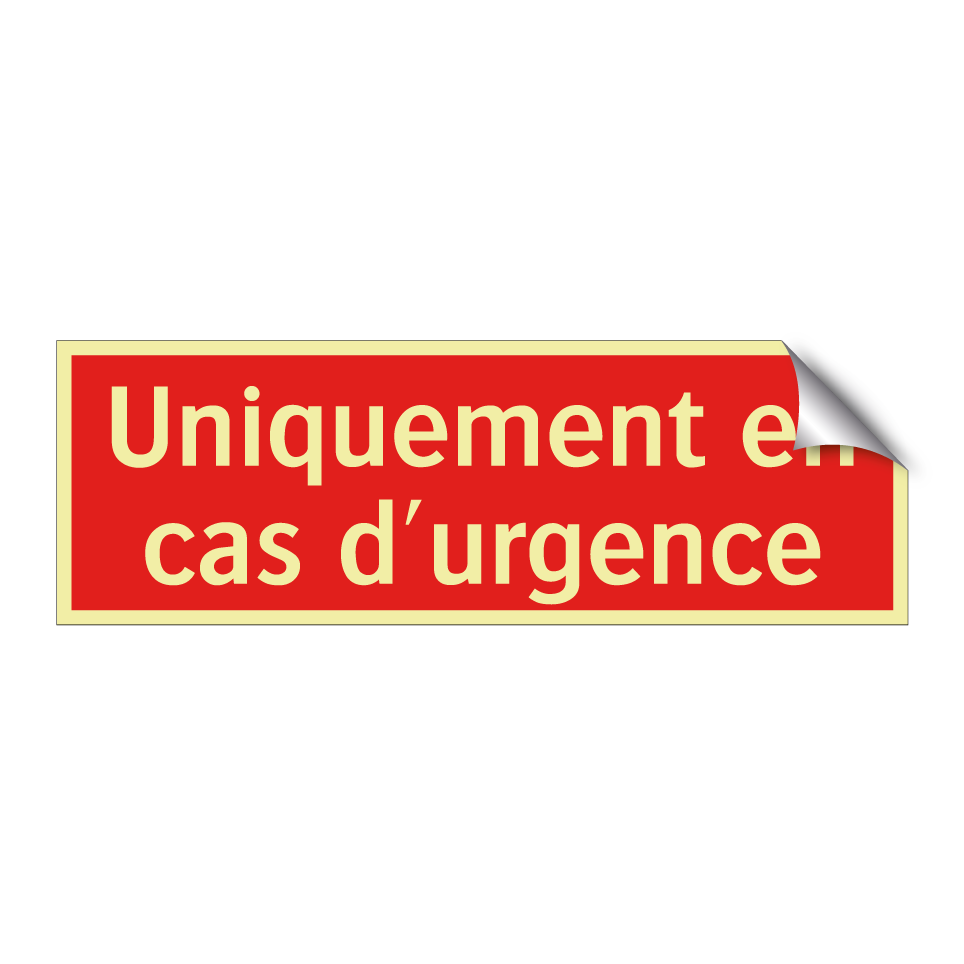 Panneau de signalisation incendie avec le texte Uniquement en cas d'urgence