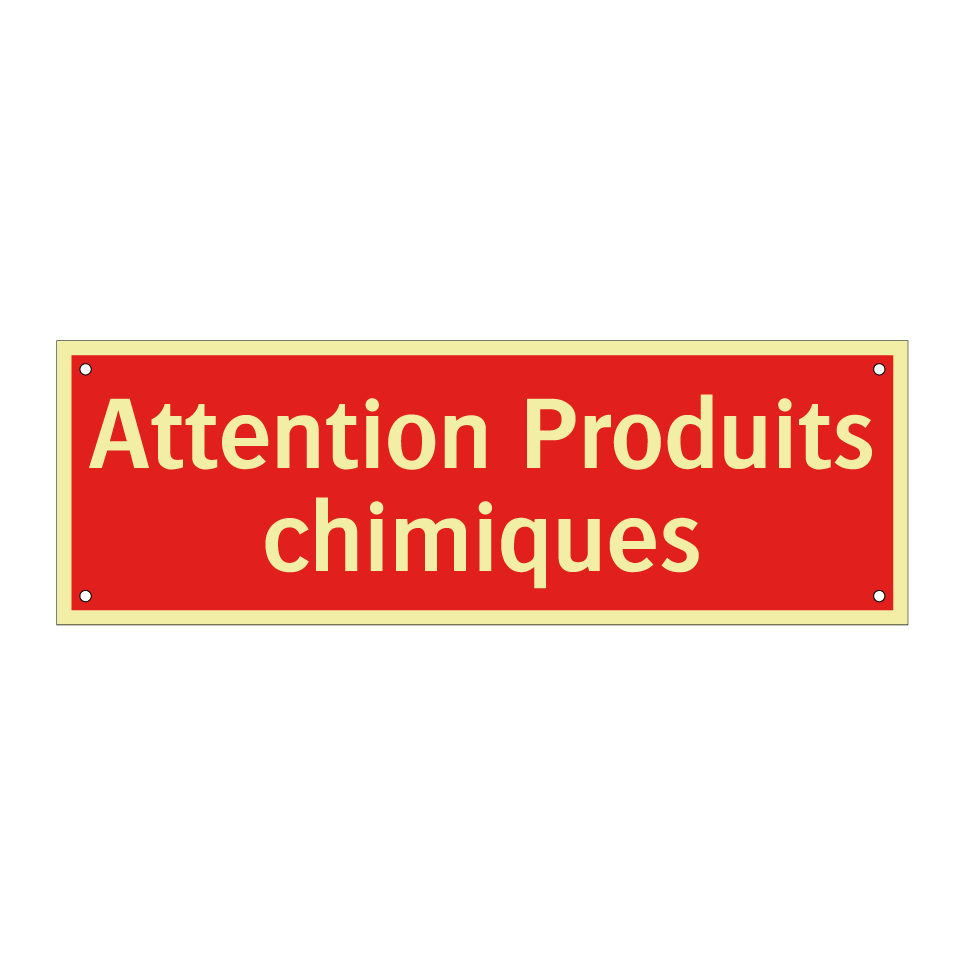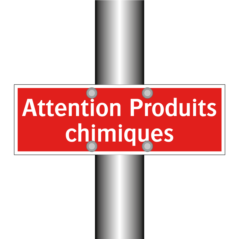 Panneau de signalisation incendie avec le texte Attention Produits chimiques