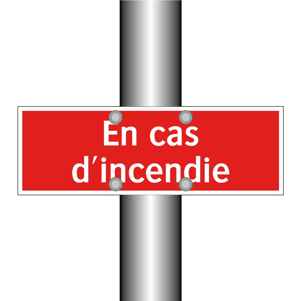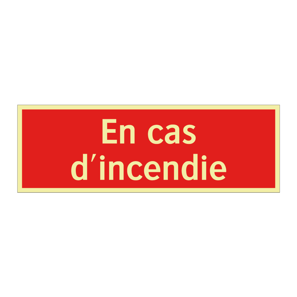 Panneau de signalisation incendie avec le texte En cas d'incendie