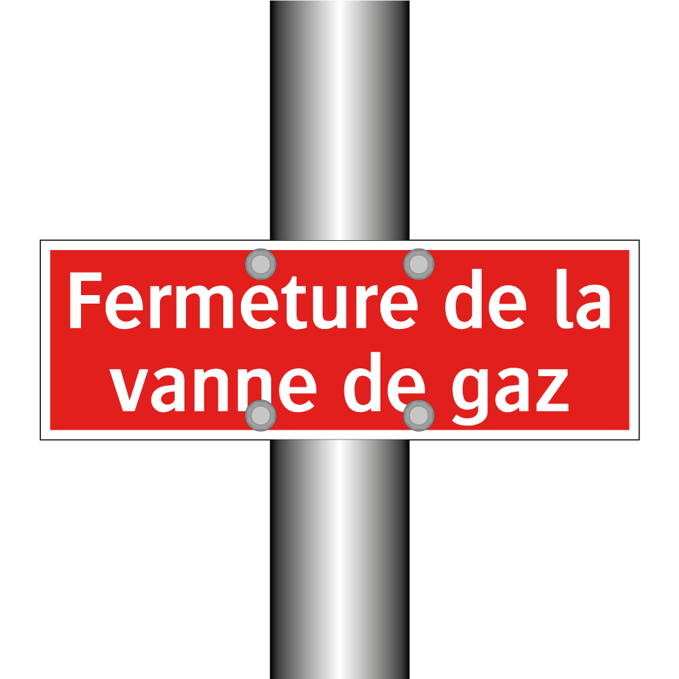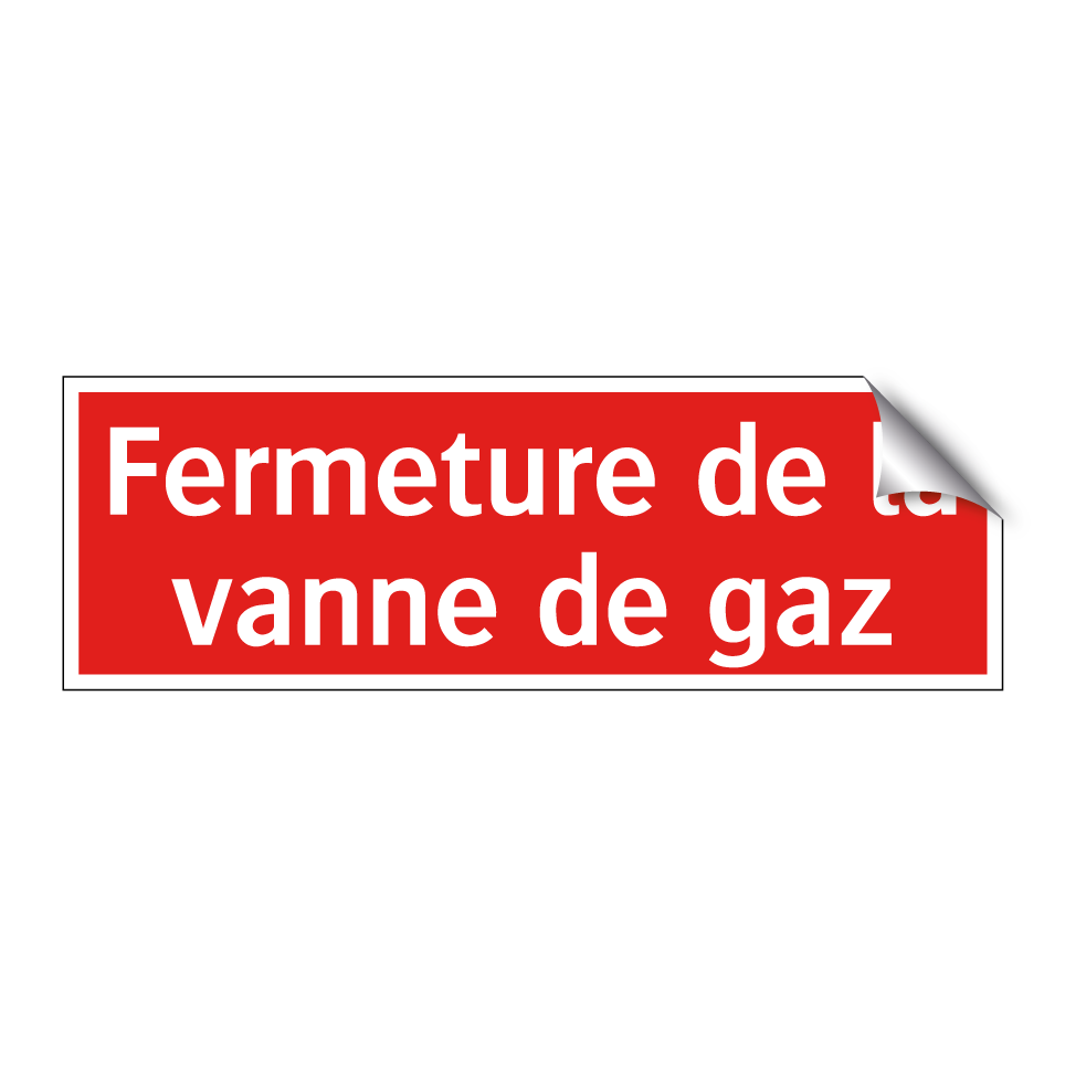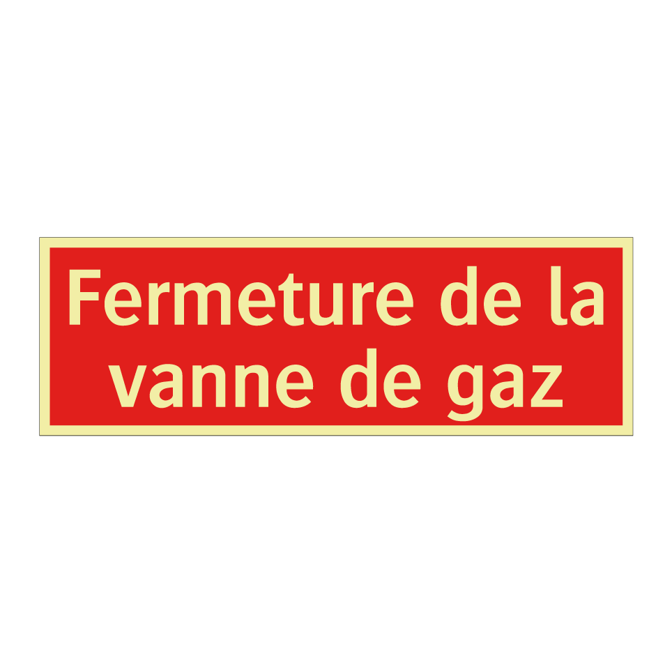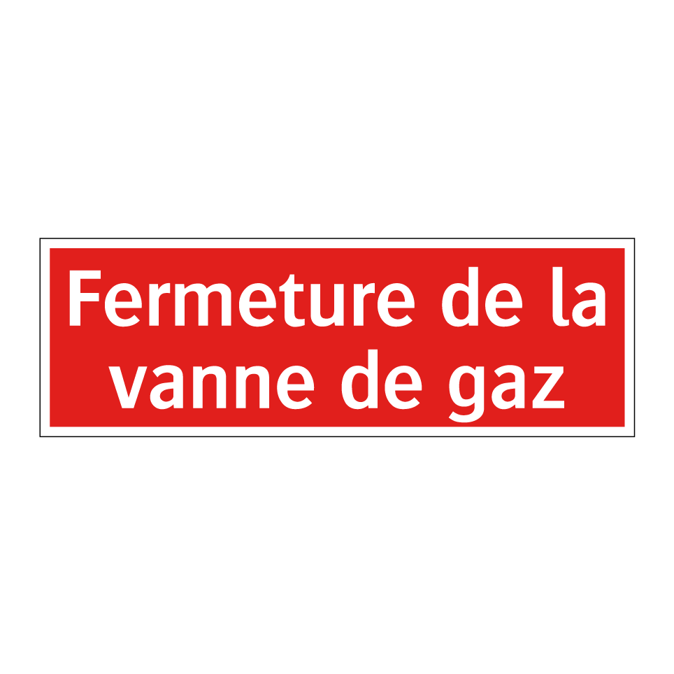 Panneau de signalisation incendie avec le texte Fermeture de la vanne de gaz