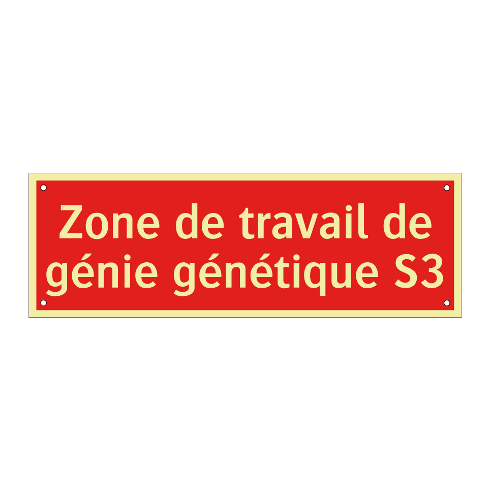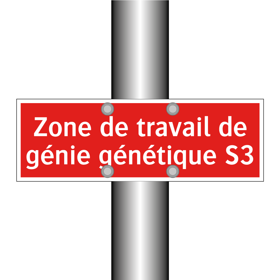 Panneau de signalisation incendie avec le texte Zone de travail de génie génétique S3