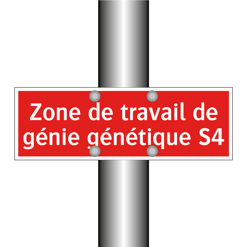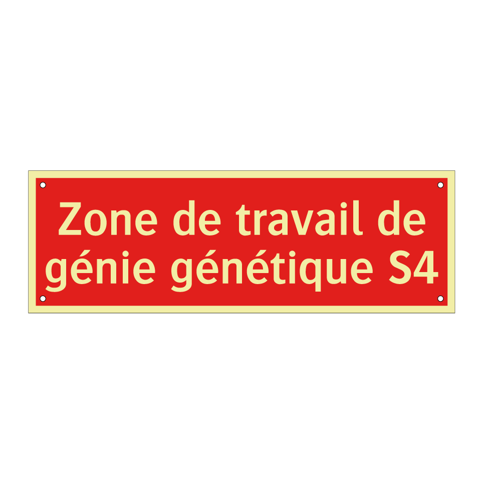 Panneau de signalisation incendie avec le texte Zone de travail de génie génétique S4