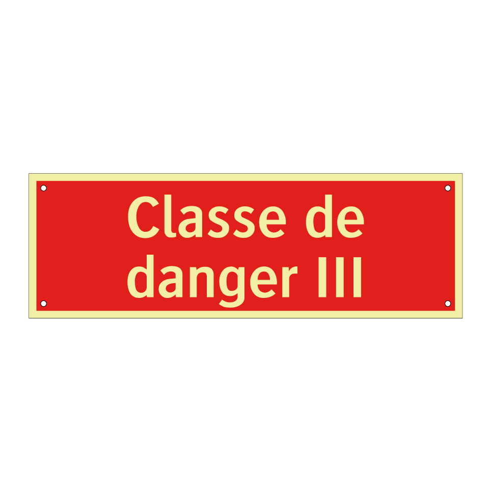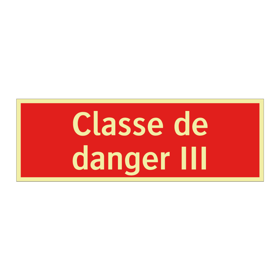 Panneau de signalisation incendie avec le texte Classe de danger III