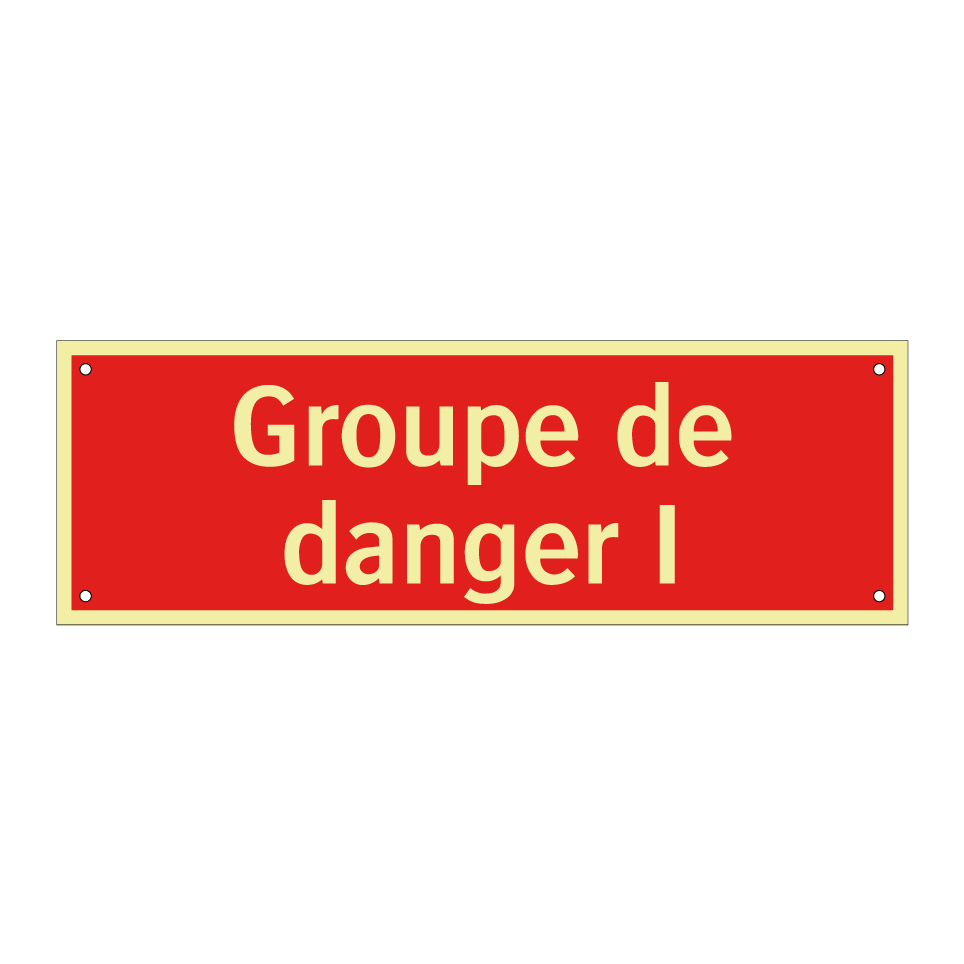 Panneau de signalisation incendie avec le texte Groupe de danger I