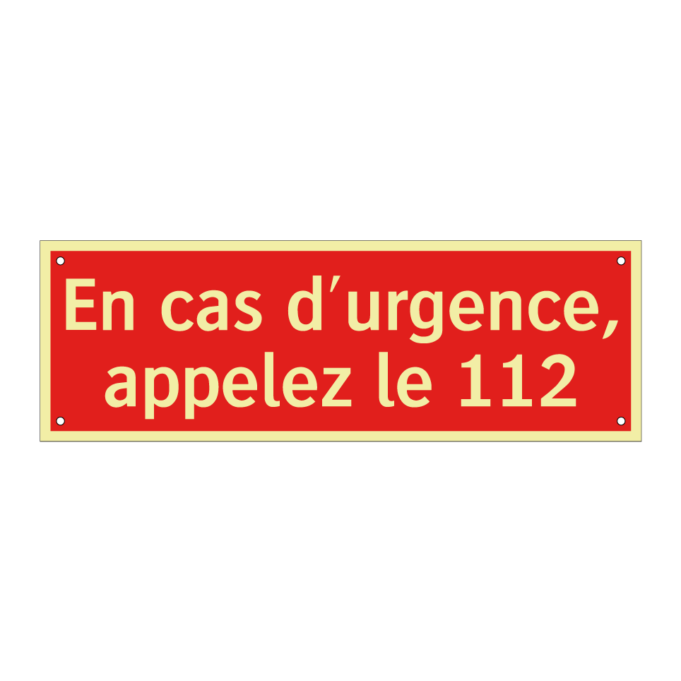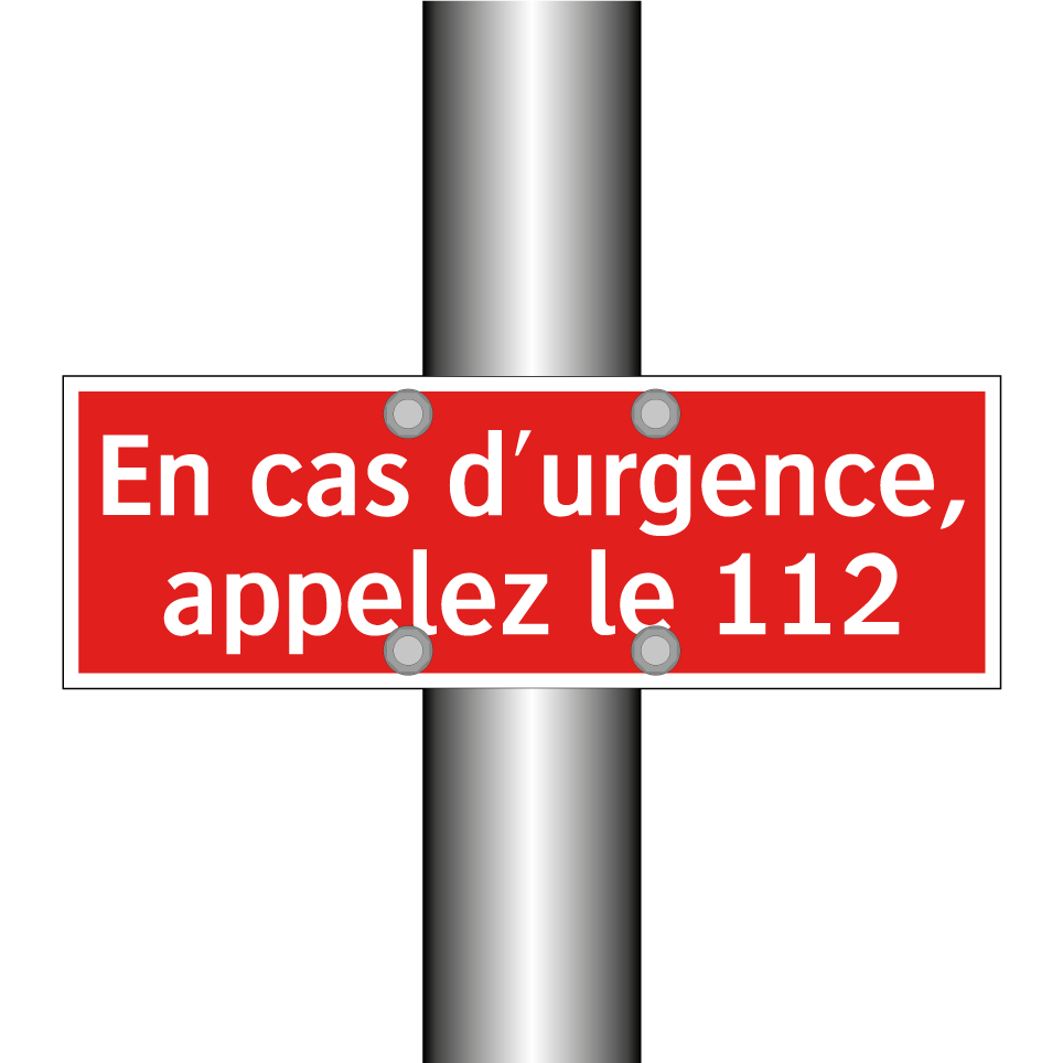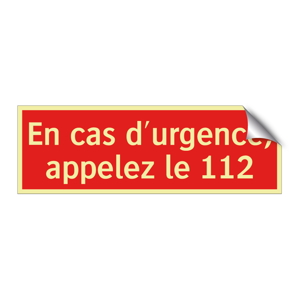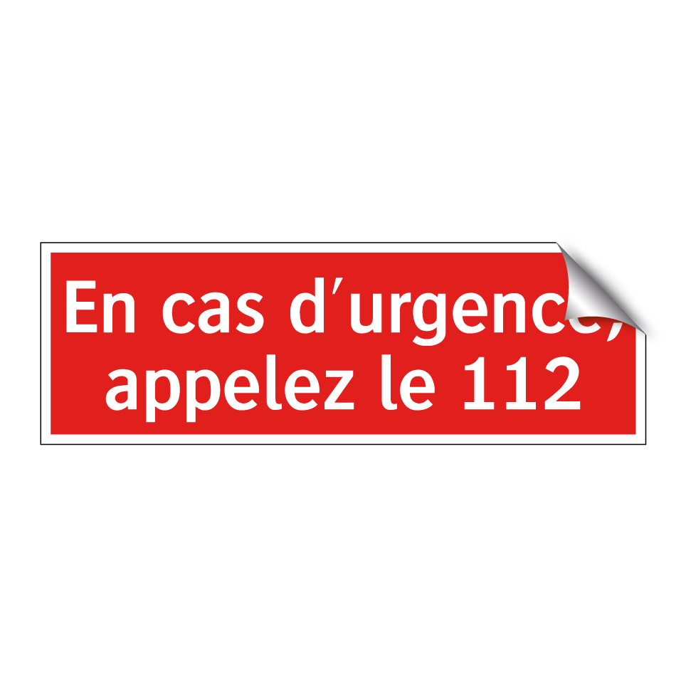 Panneau de signalisation incendie avec le texte En cas d'urgence, appelez le 112