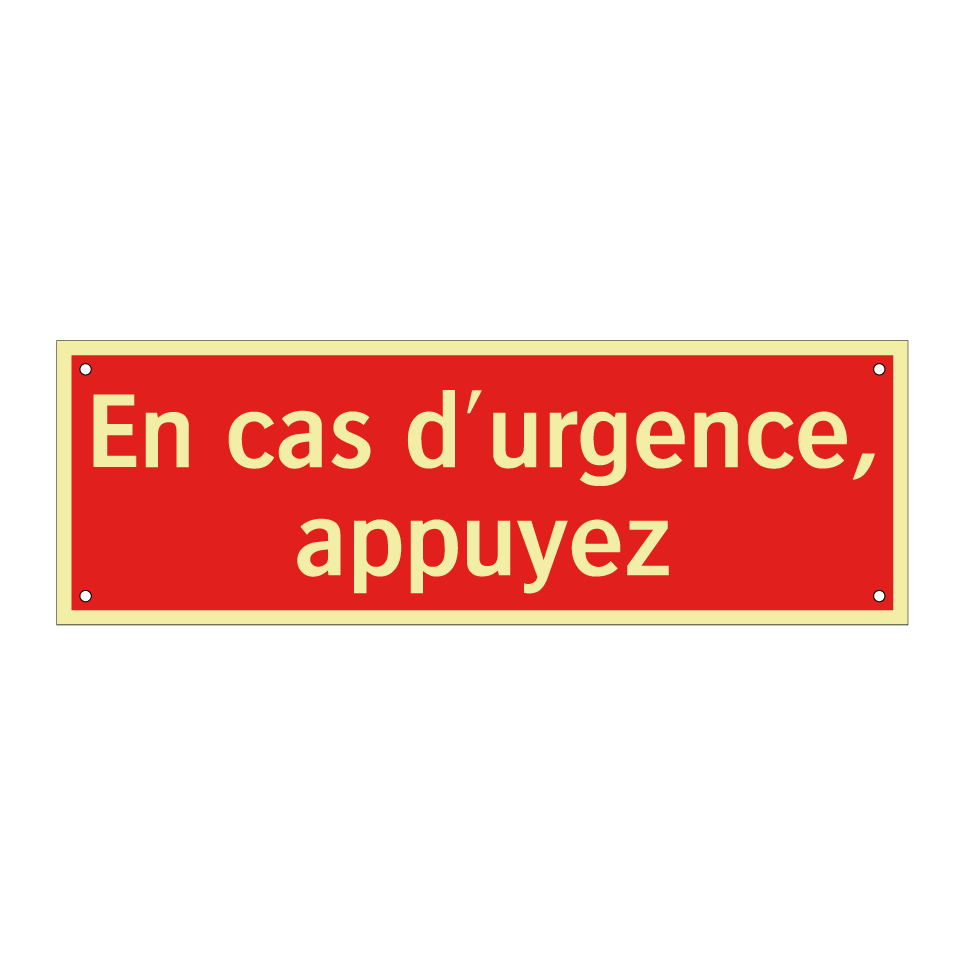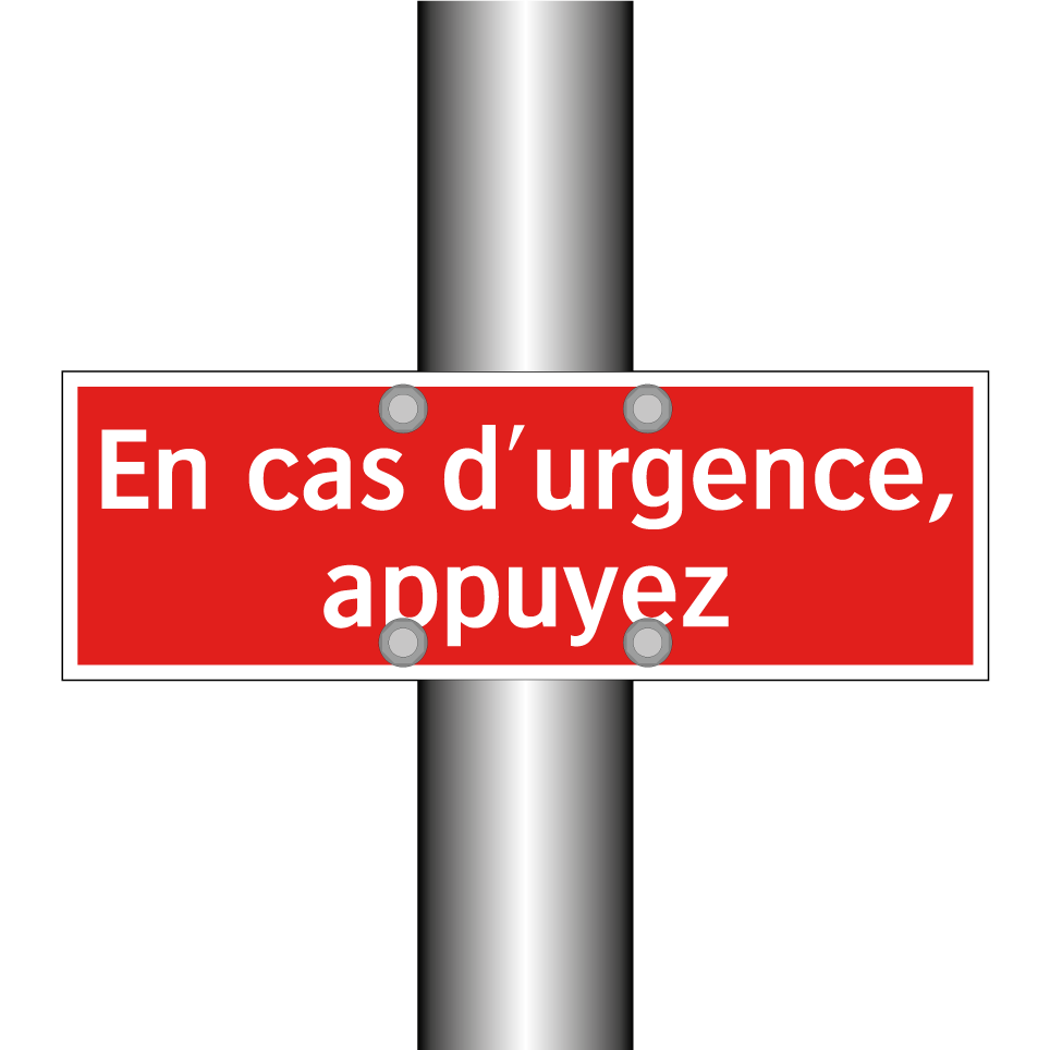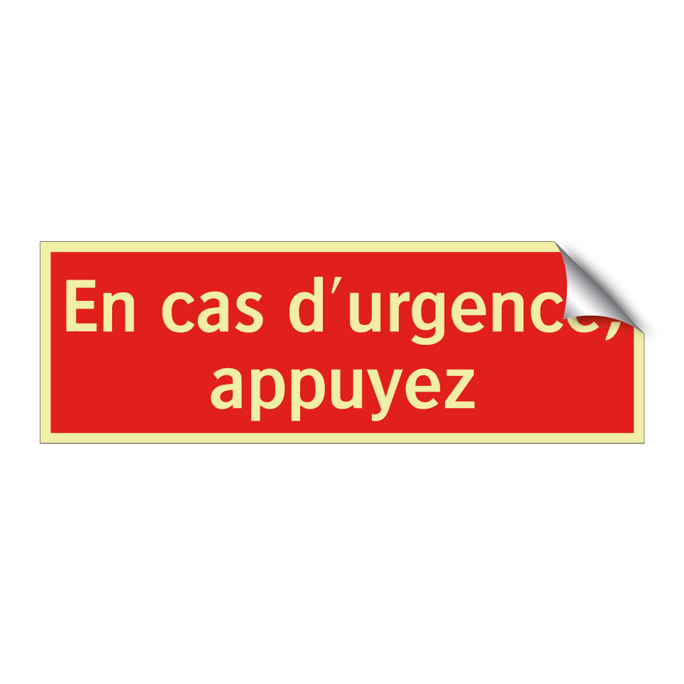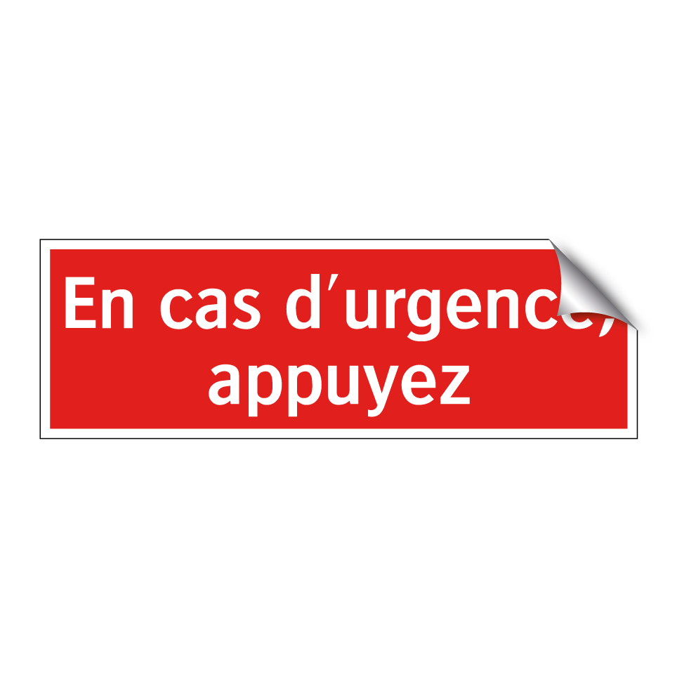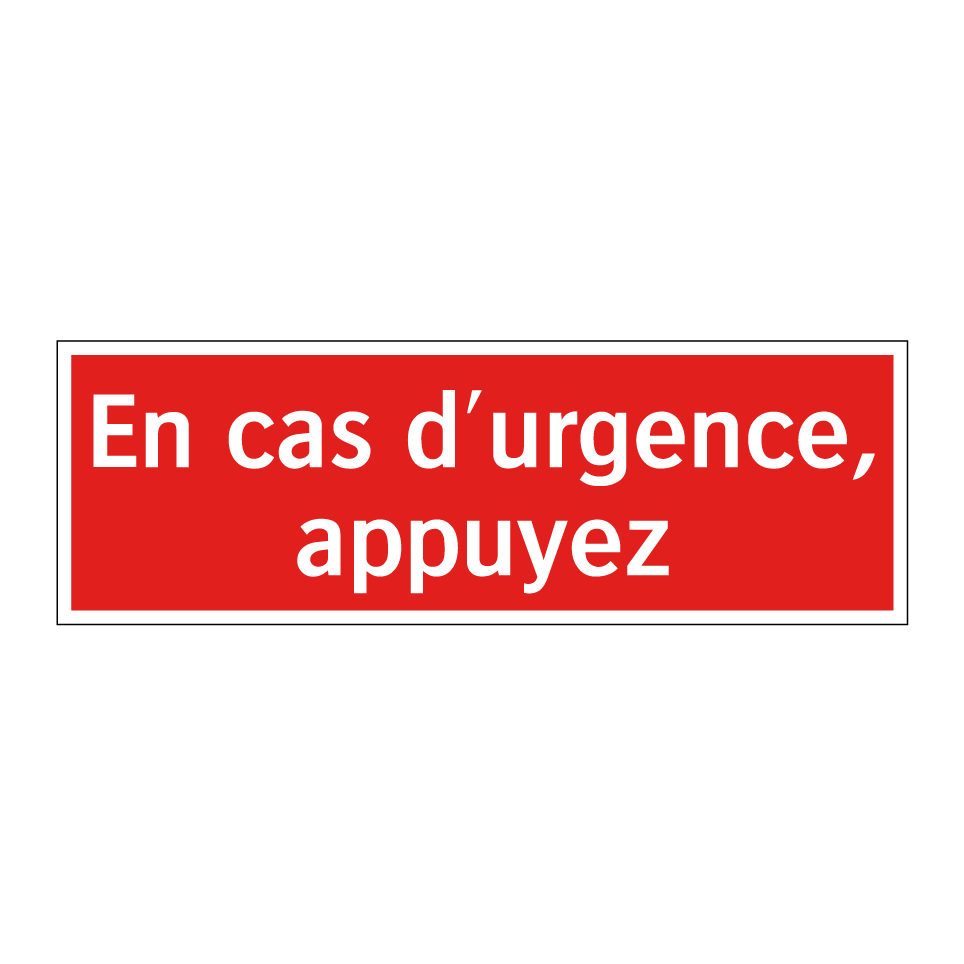 Panneau de signalisation incendie avec le texte En cas d'urgence, appuyez