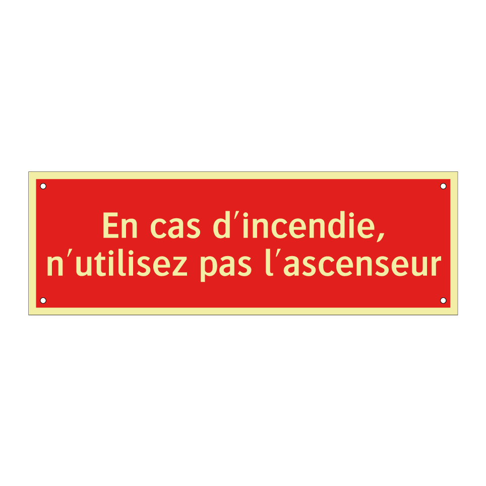Panneau de signalisation incendie avec le texte En cas d'incendie, n'utilisez pas l'ascenseur
