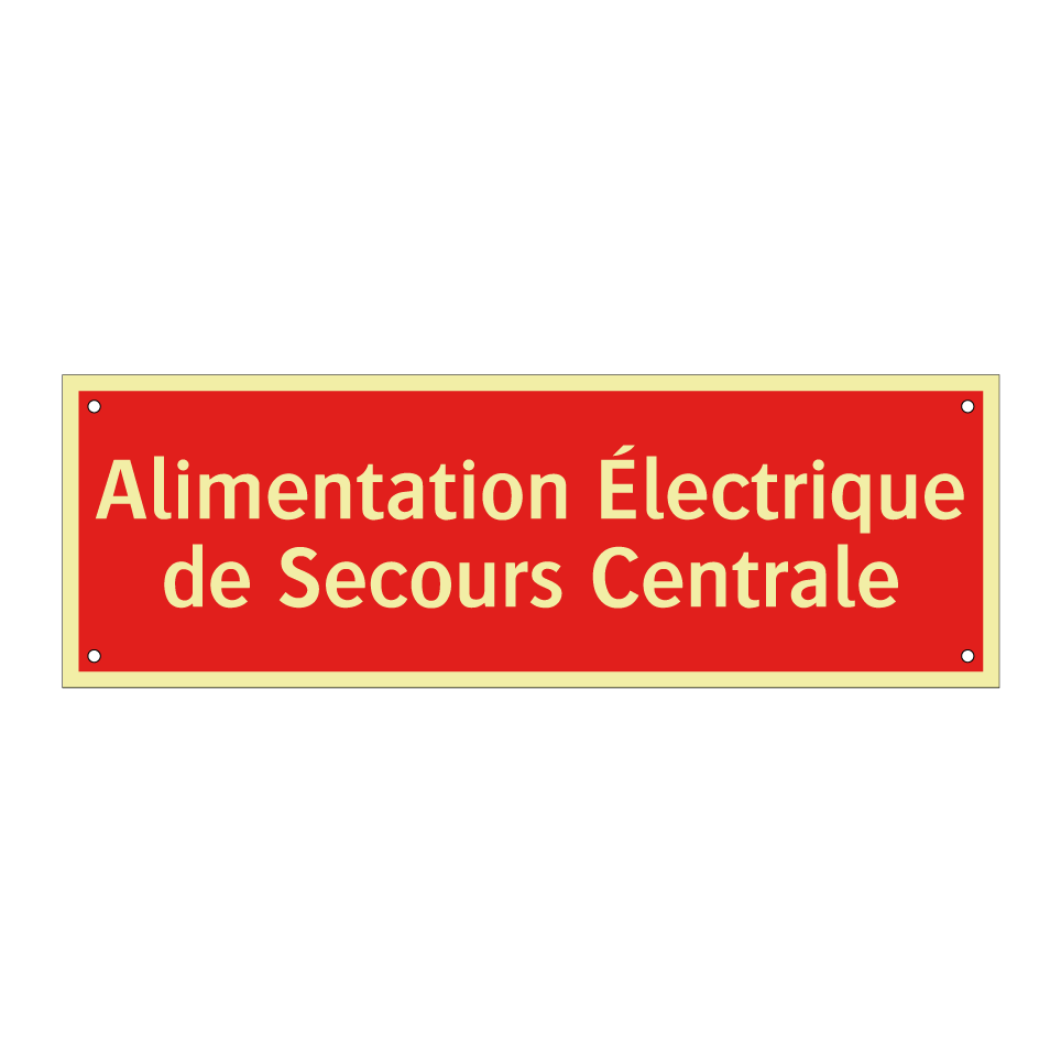Panneau de signalisation incendie avec le texte Alimentation Électrique de Secours Centrale