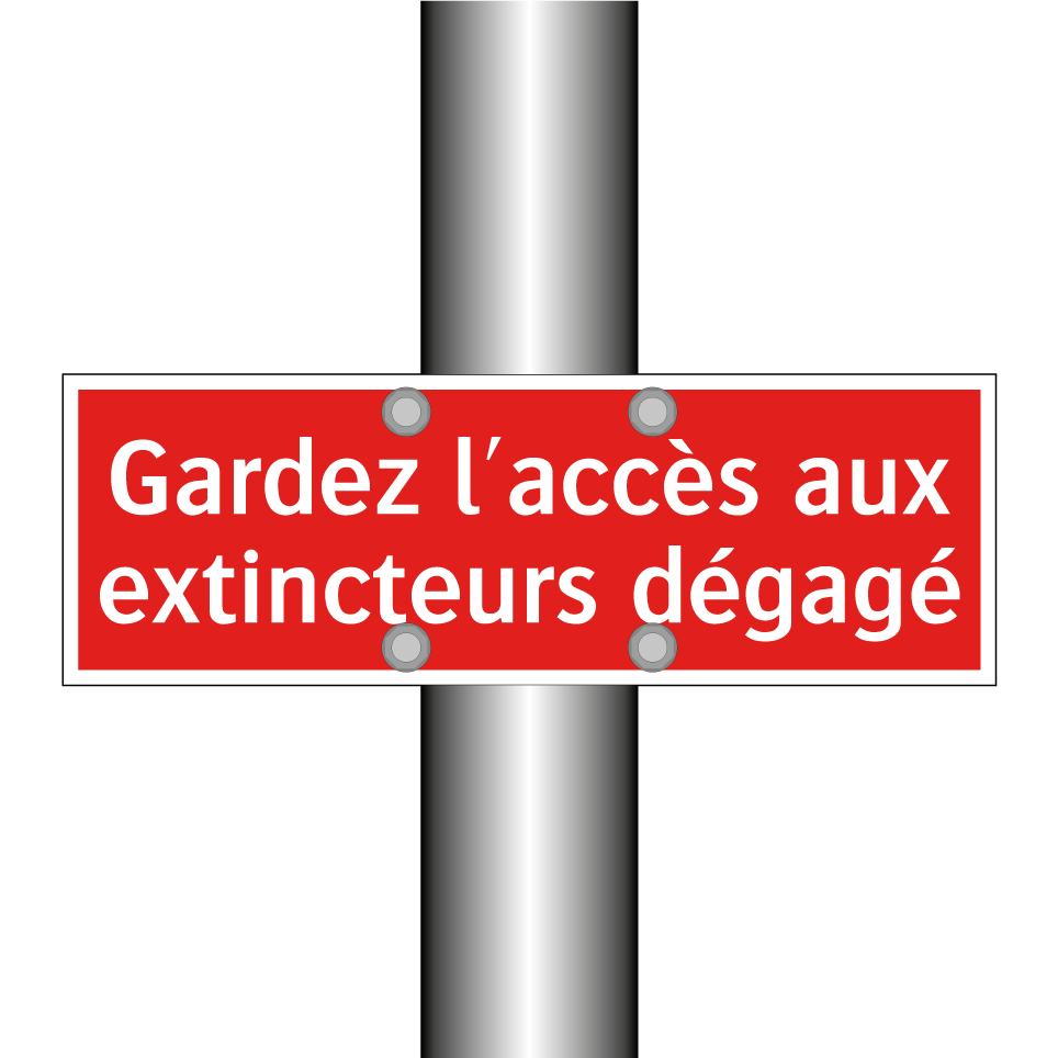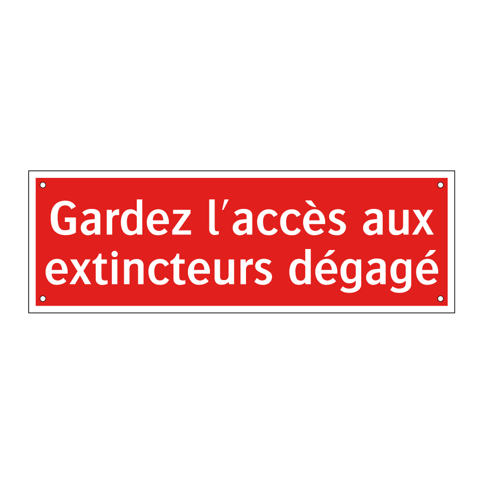 Panneau de signalisation incendie avec le texte Gardez l'accès aux extincteurs dégagé