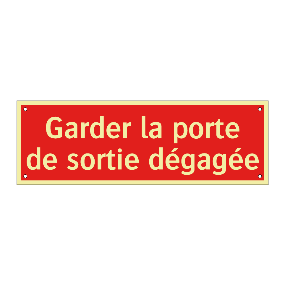 Panneau de signalisation incendie avec le texte Garder la porte de sortie dégagée