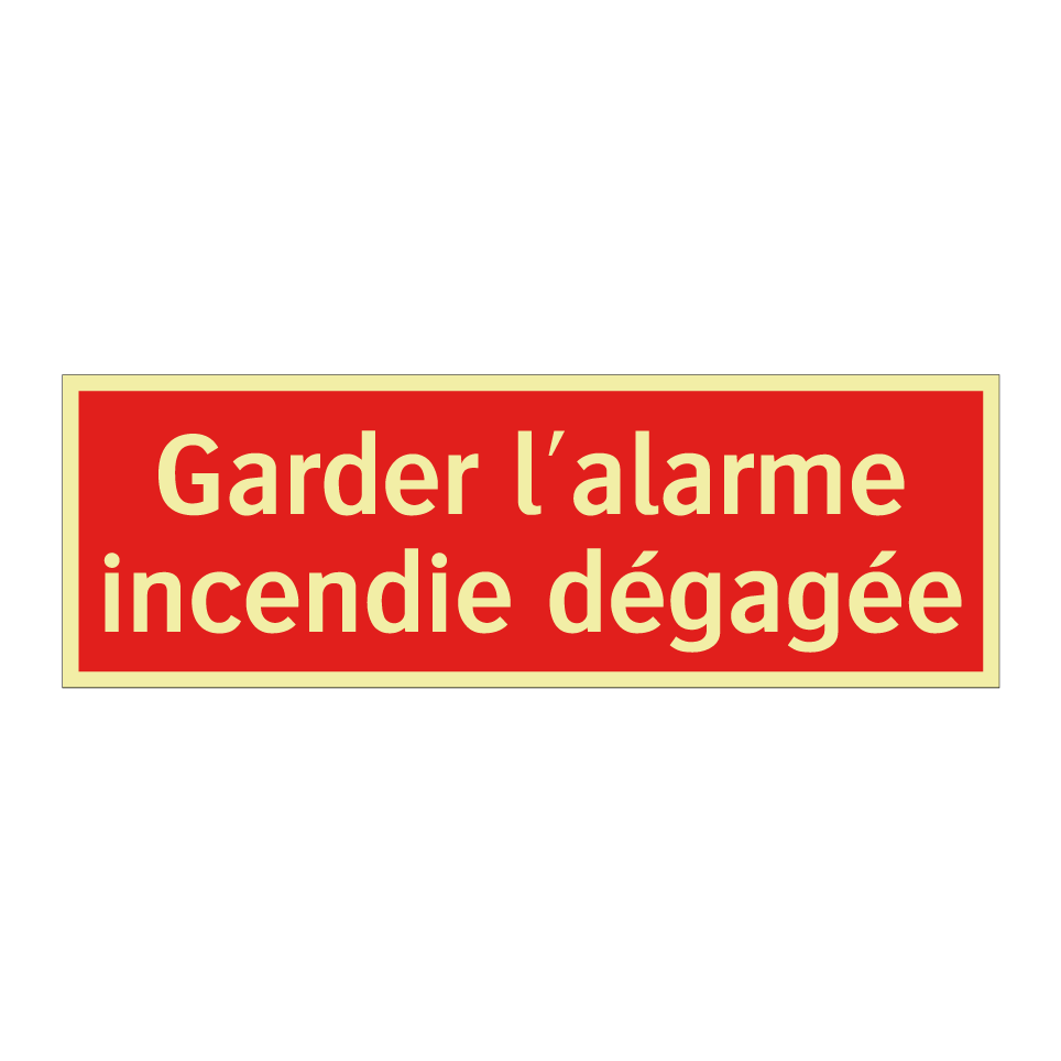 Panneau de signalisation incendie avec le texte Garder l'alarme incendie dégagée