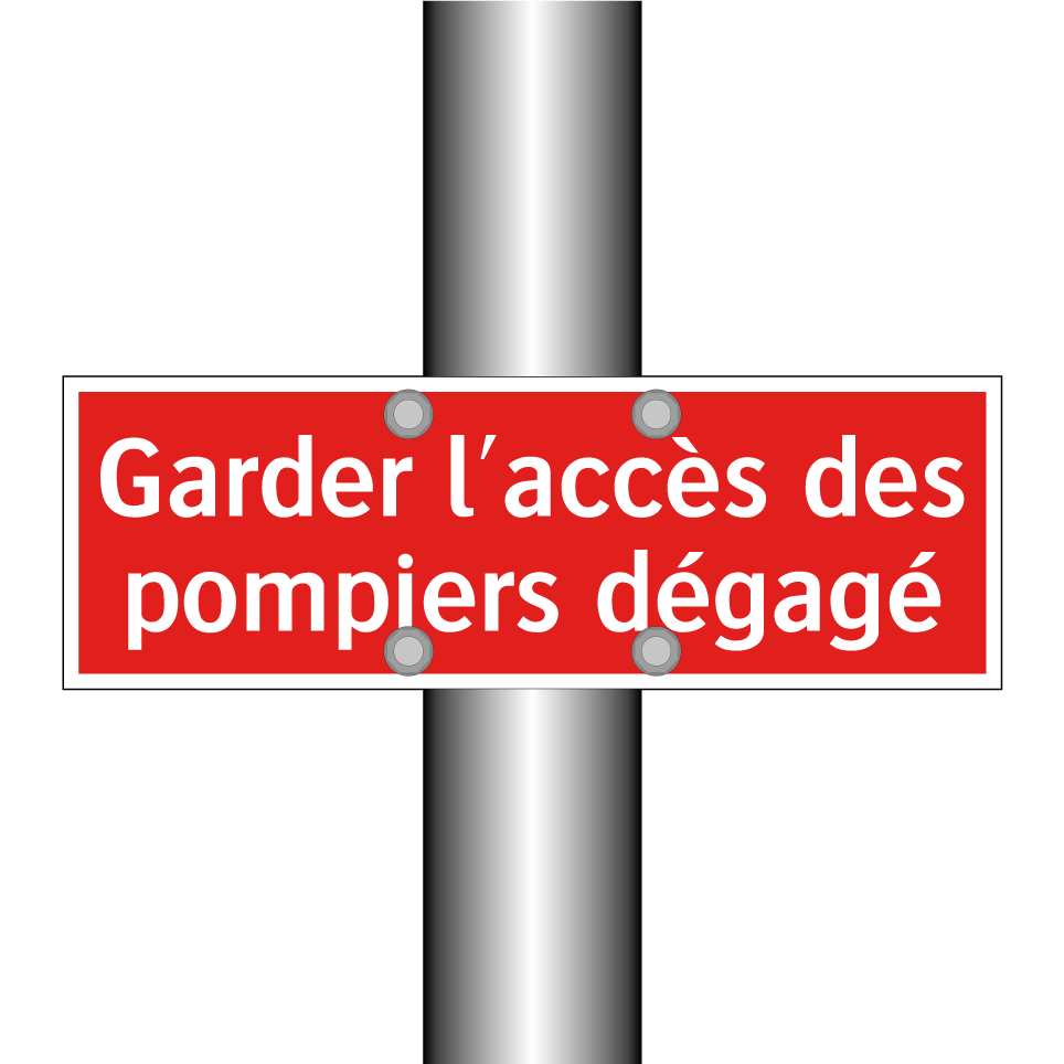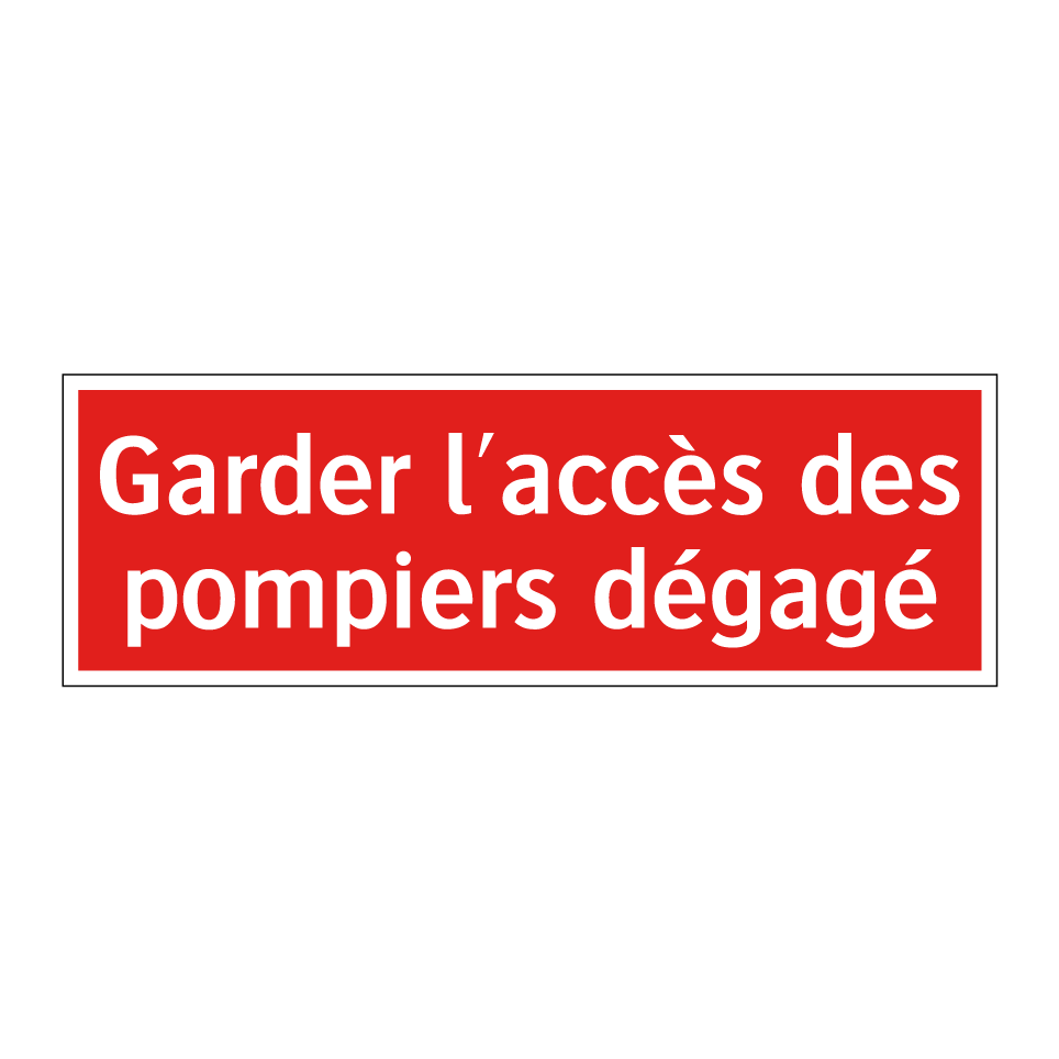 Panneau de signalisation incendie avec le texte Garder l'accès des pompiers dégagé