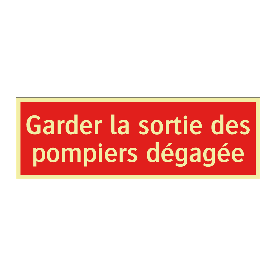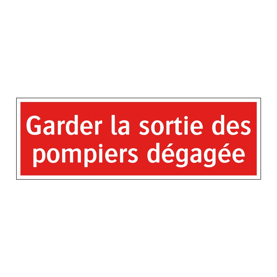 Panneau de signalisation incendie avec le texte Garder la sortie des pompiers dégagée