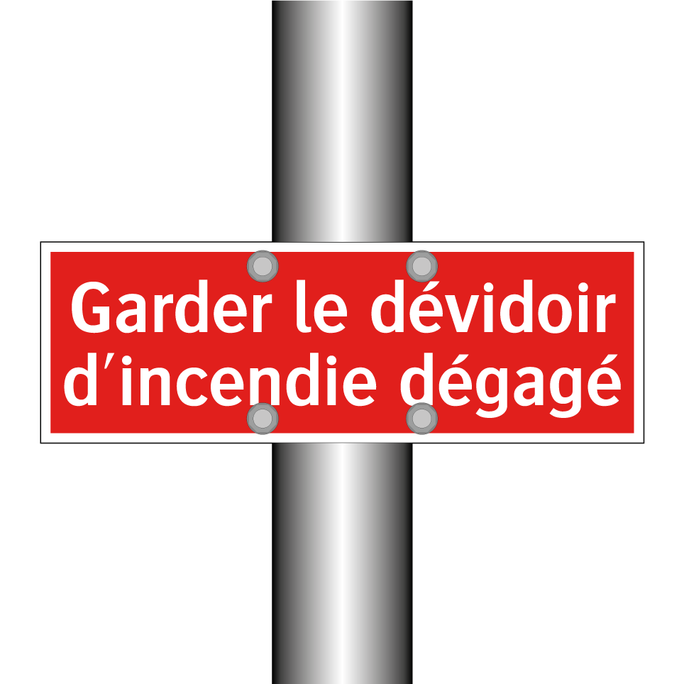 Panneau de signalisation incendie avec le texte Garder le dévidoir d'incendie dégagé