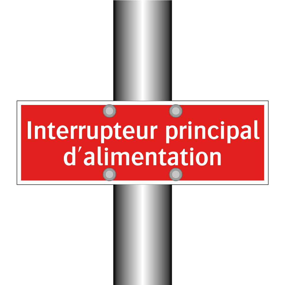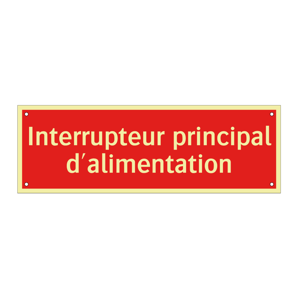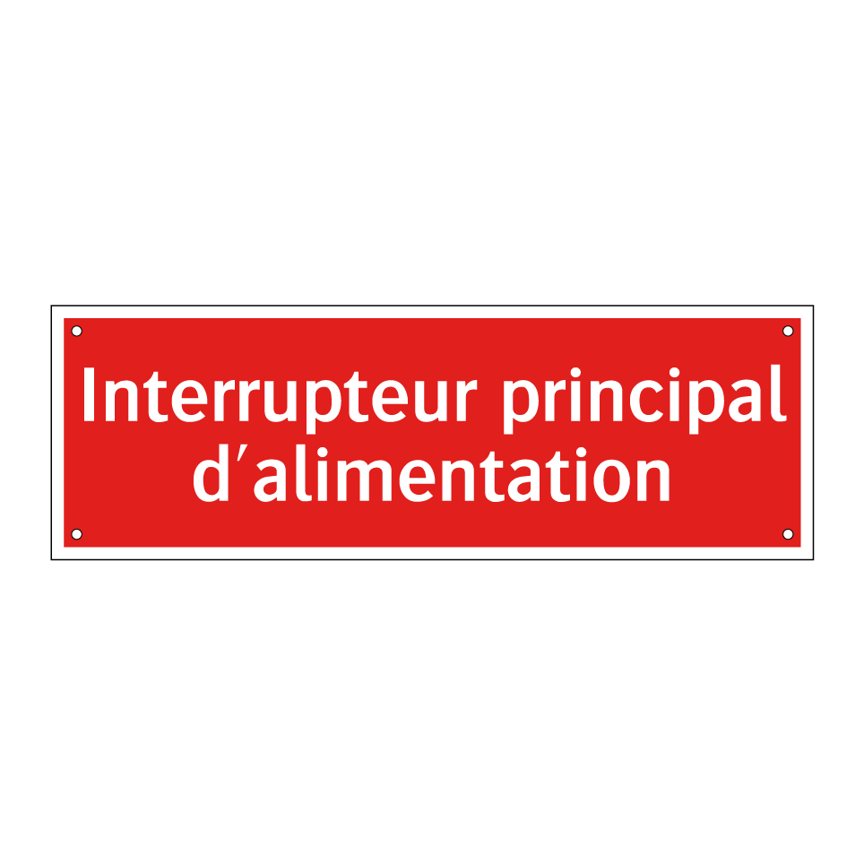 Panneau de signalisation incendie avec le texte Interrupteur principal d'alimentation
