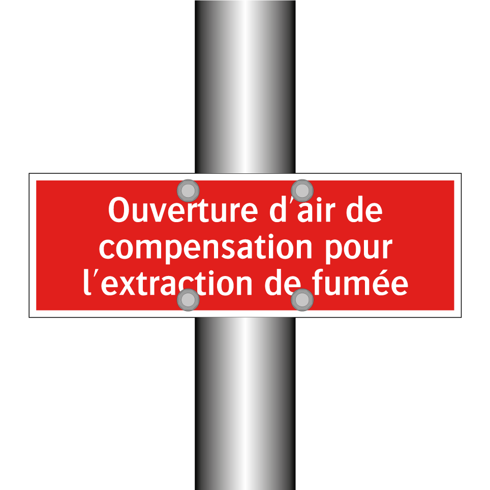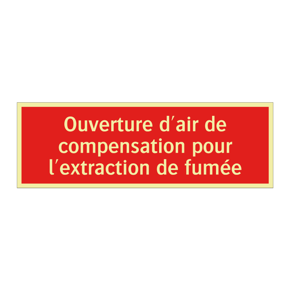 Panneau de signalisation incendie avec le texte Ouverture d'air de compensation pour l'extraction de fumée