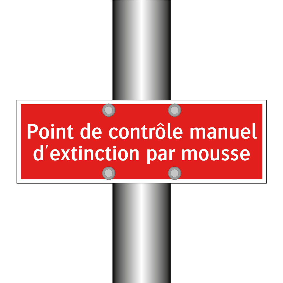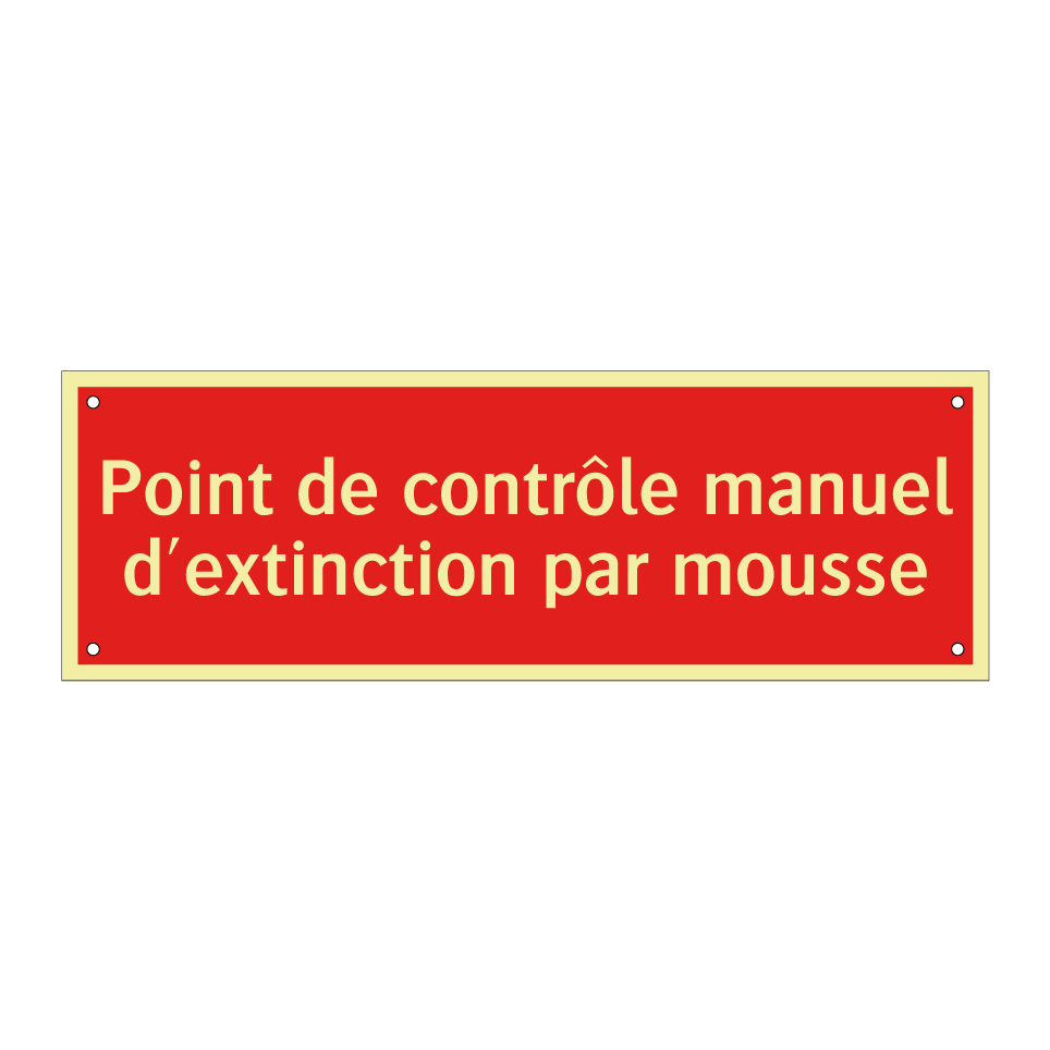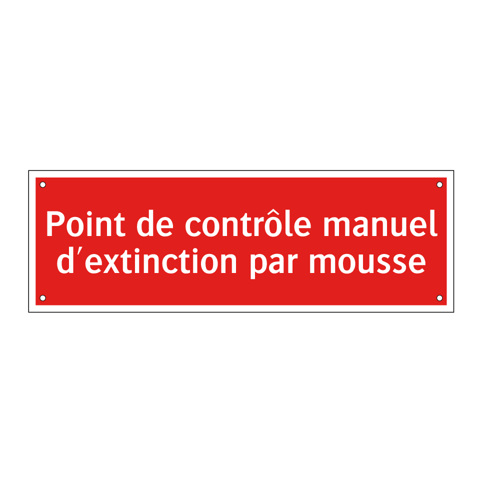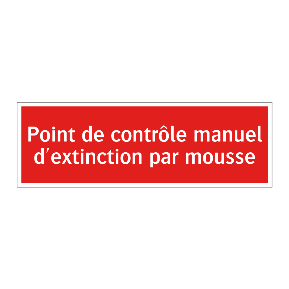 Panneau de signalisation incendie avec le texte Point de contrôle manuel d'extinction par mousse