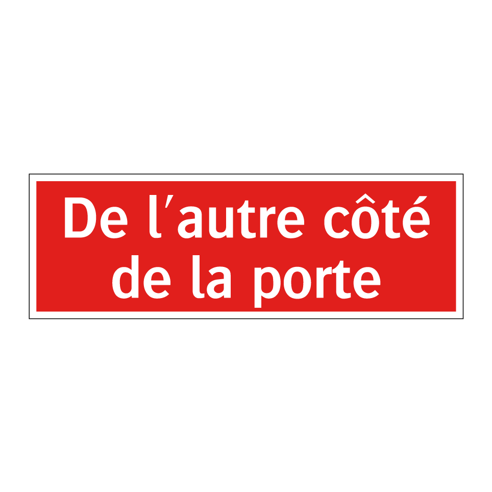 Panneau de signalisation incendie avec le texte De l'autre côté de la porte