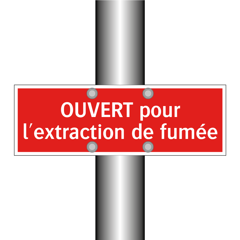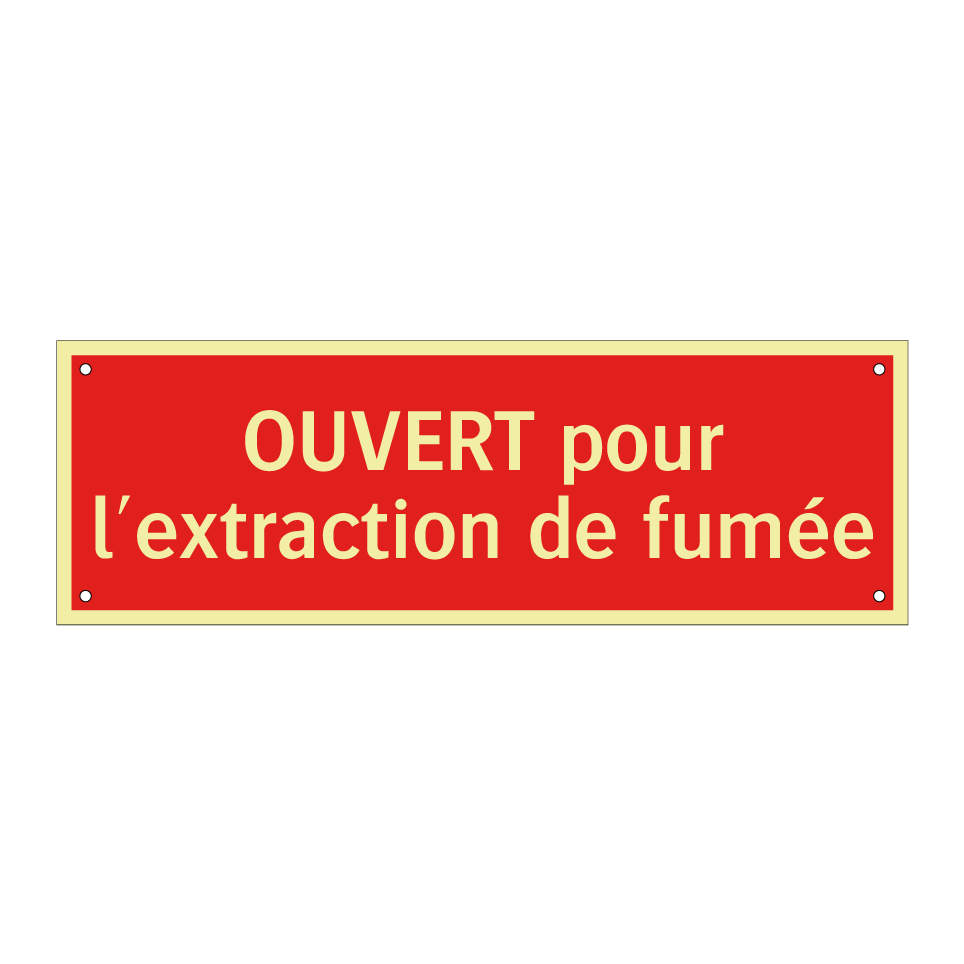 Panneau de signalisation incendie avec le texte OUVERT pour l'extraction de fumée