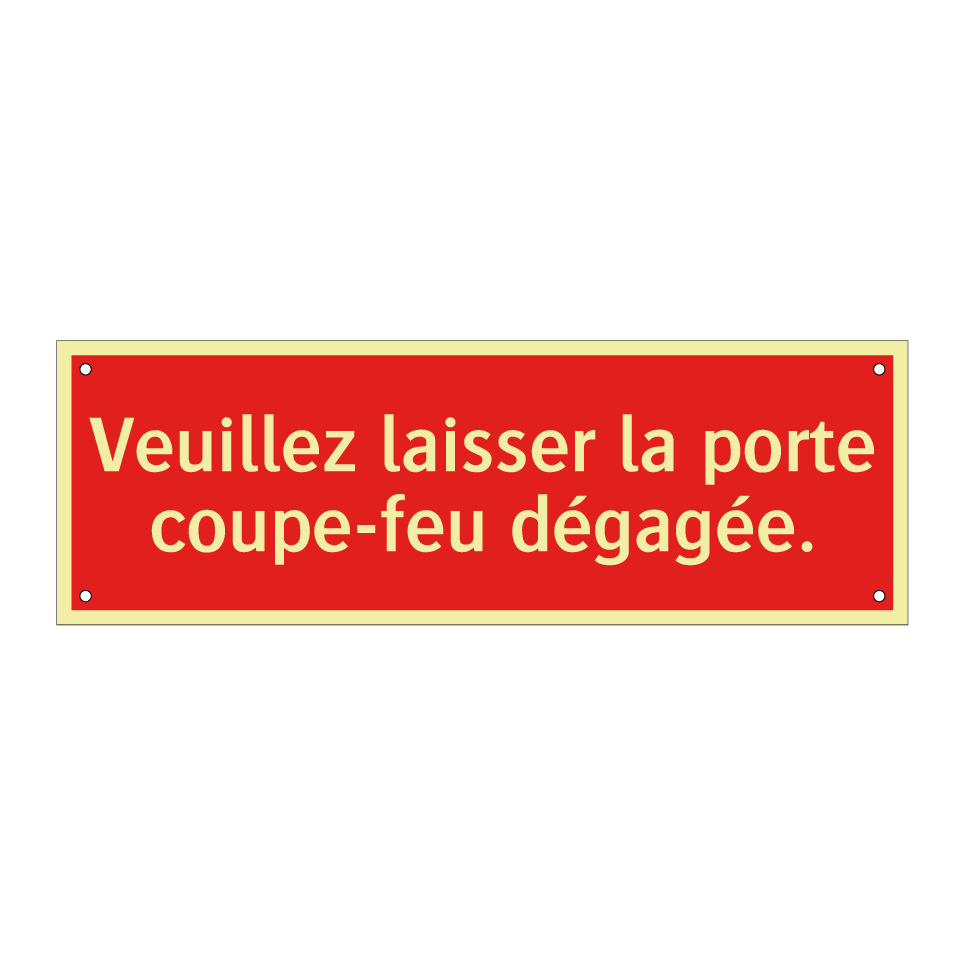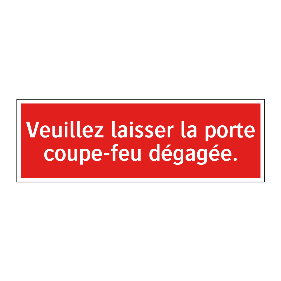 Panneau de signalisation incendie avec le texte Veuillez laisser la porte coupe-feu dégagée.