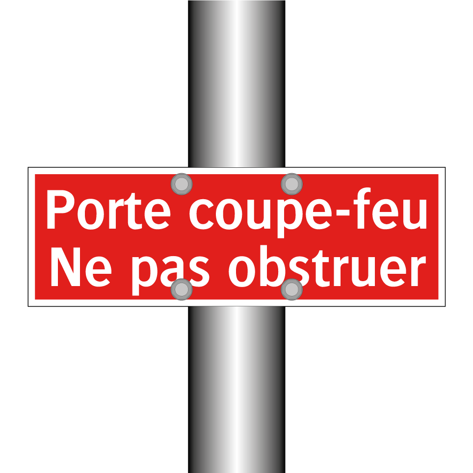 Panneau de signalisation incendie avec le texte Porte coupe-feu Ne pas obstruer