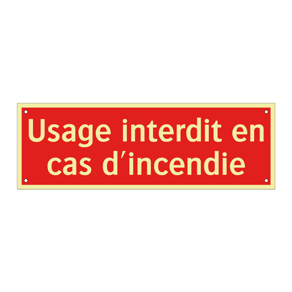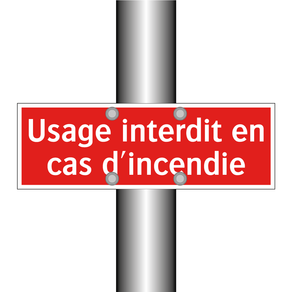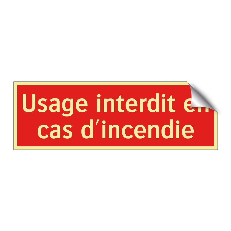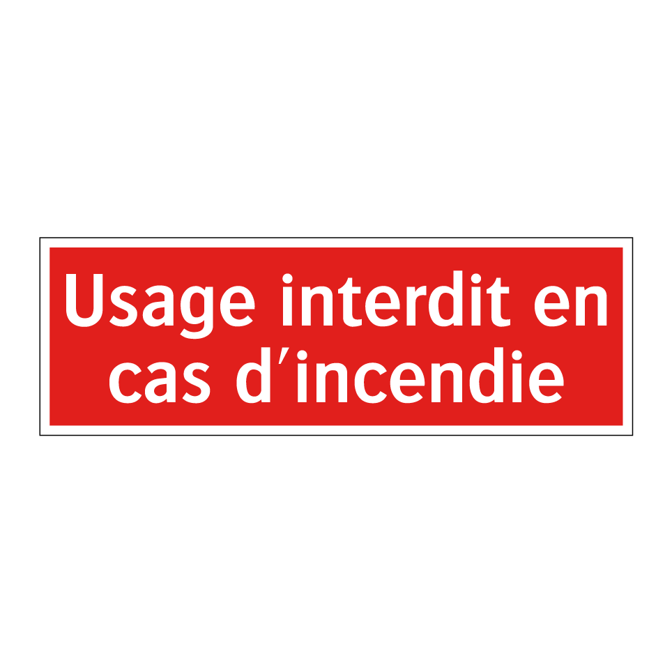 Panneau de signalisation incendie avec le texte Usage interdit en cas d'incendie