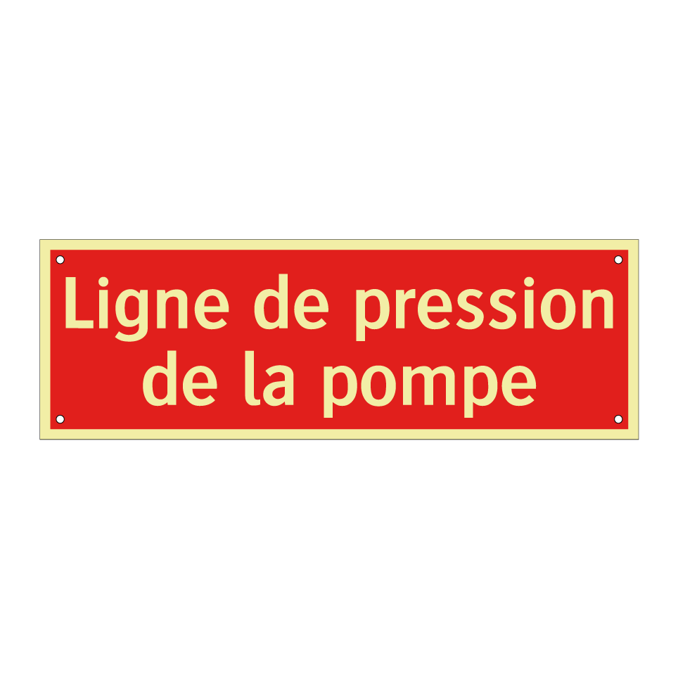 Panneau de signalisation incendie avec le texte Ligne de pression de la pompe