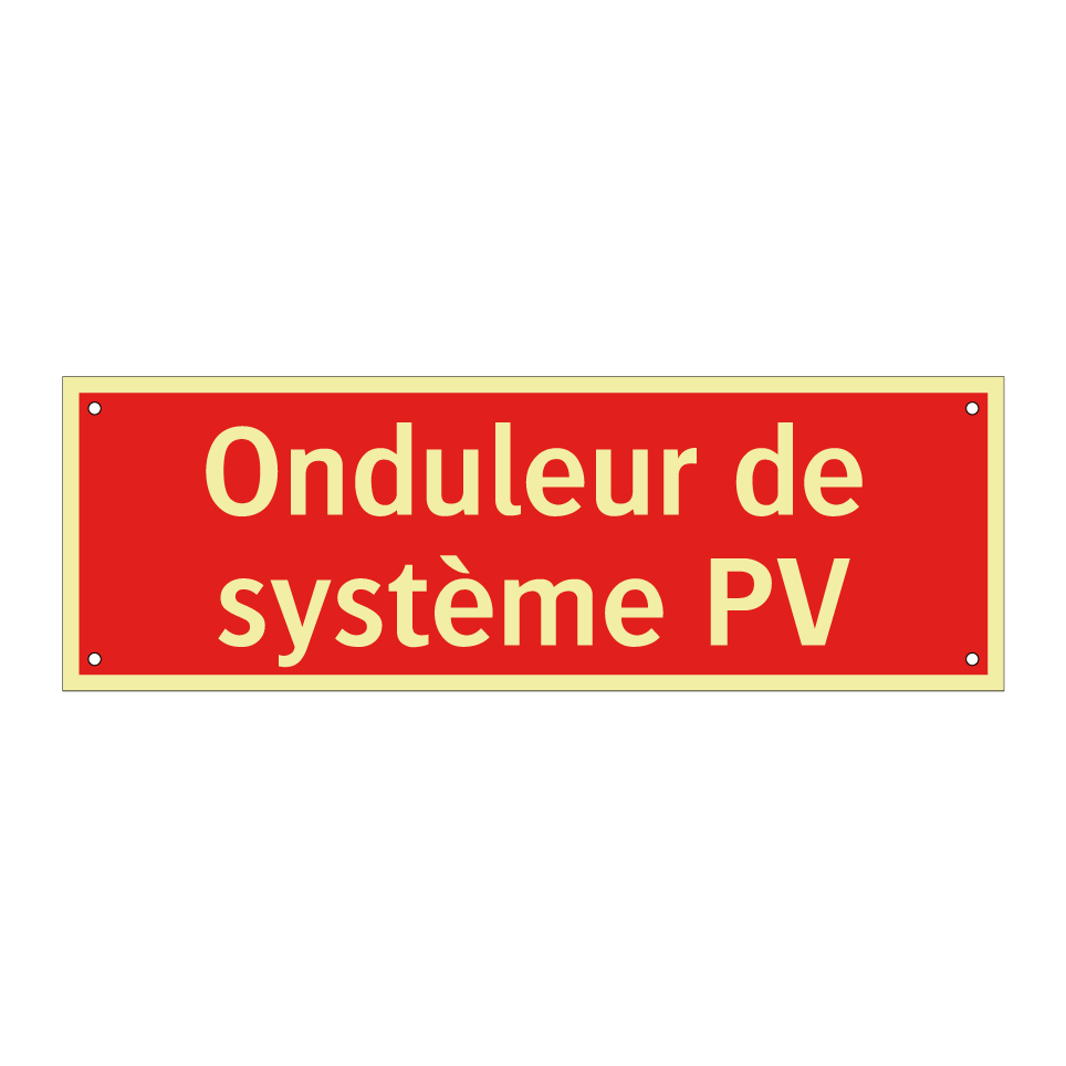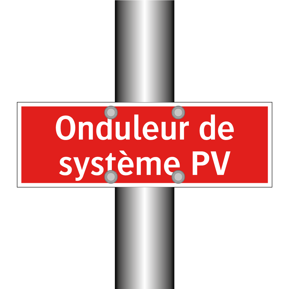 Panneau de signalisation incendie avec le texte Onduleur de système PV