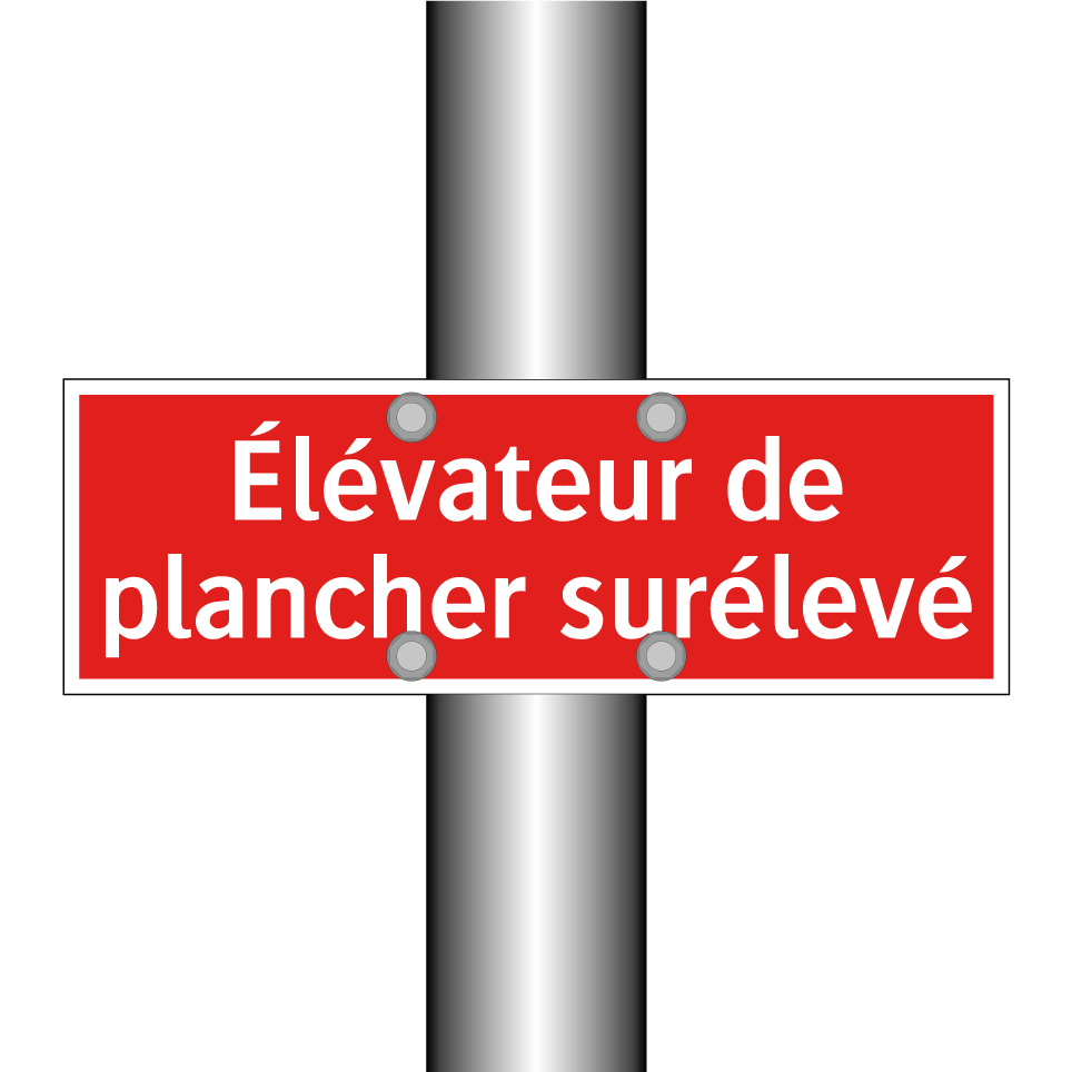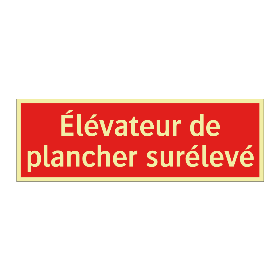 Panneau de signalisation incendie avec le texte Élévateur de plancher surélevé