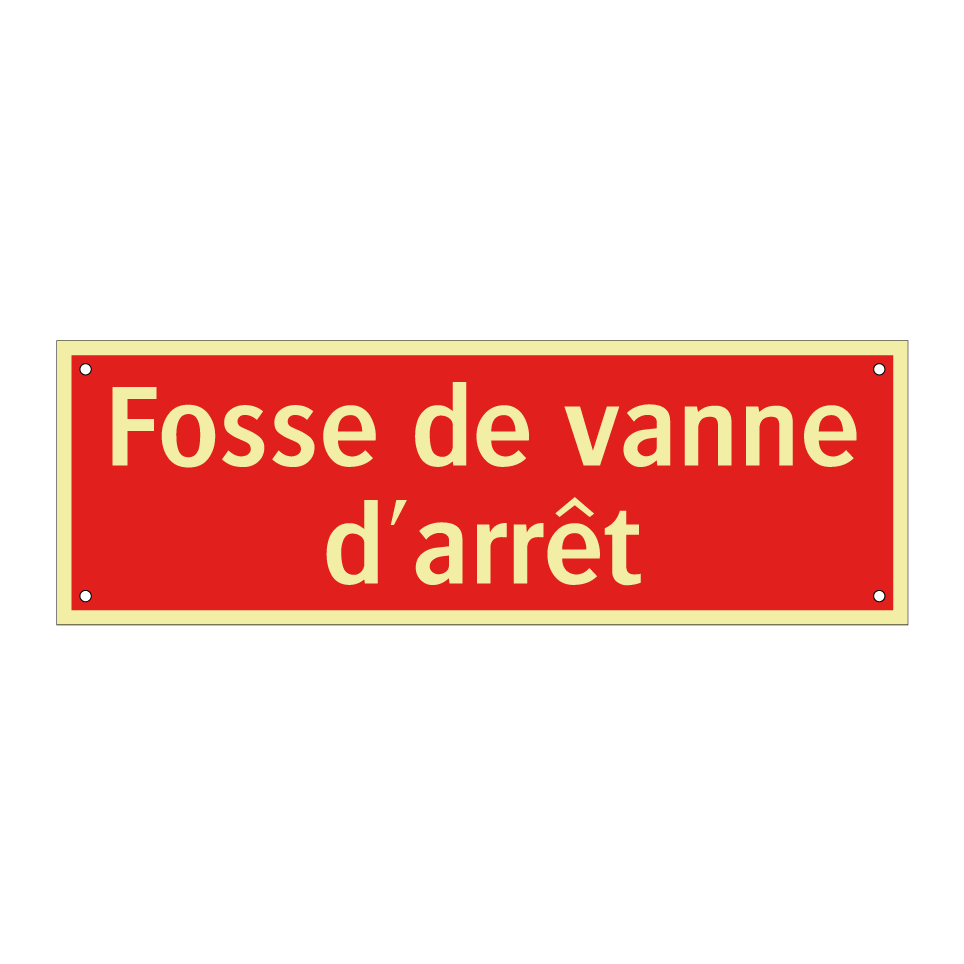 Panneau de signalisation incendie avec le texte Fosse de vanne d'arrêt