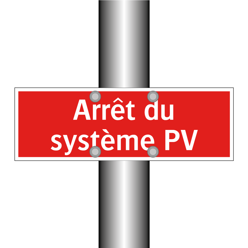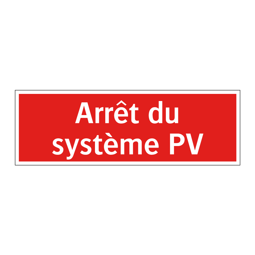 Panneau de signalisation incendie avec le texte Arrêt du système PV