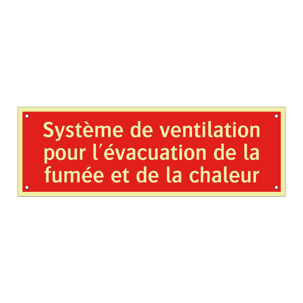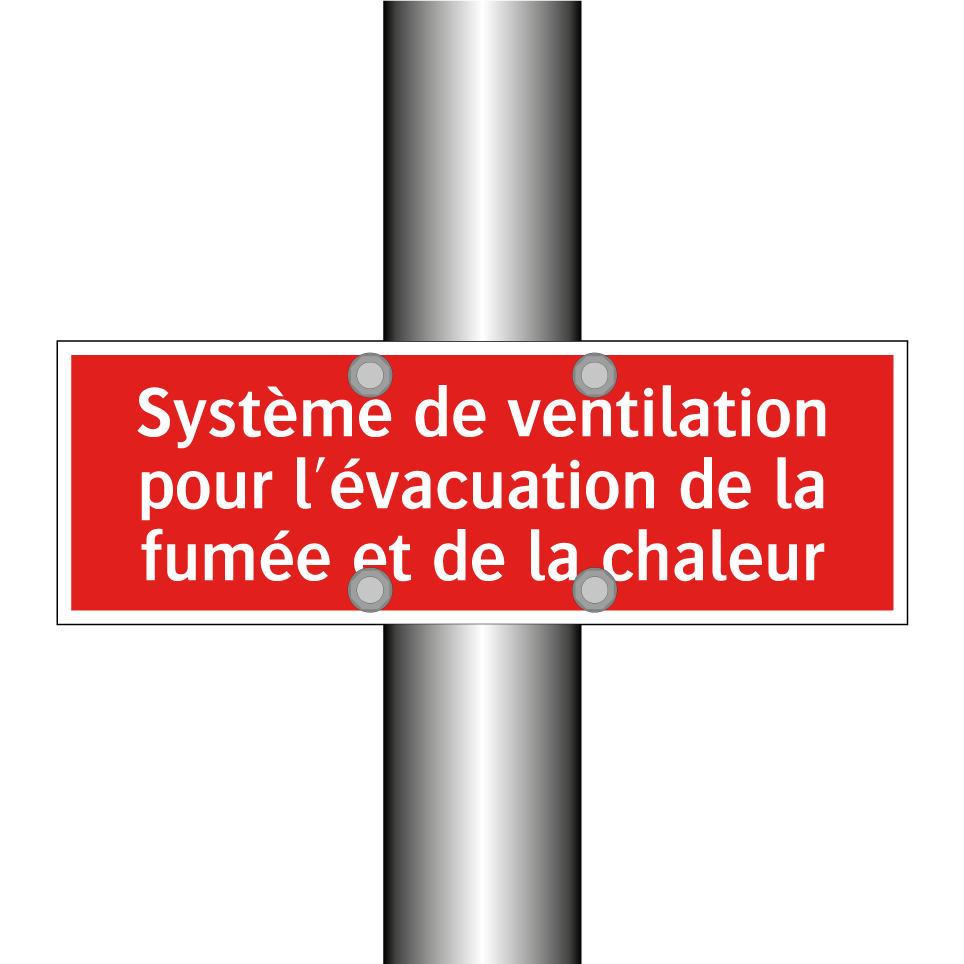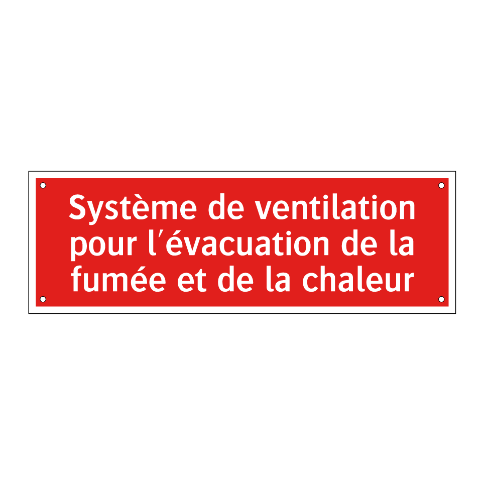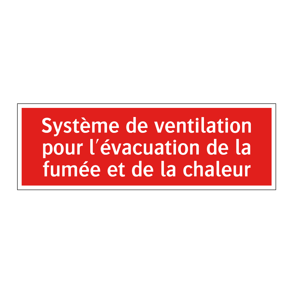 Panneau de signalisation incendie avec le texte Système de ventilation pour l'évacuation de la fumée et de la chaleur