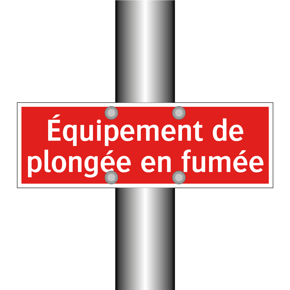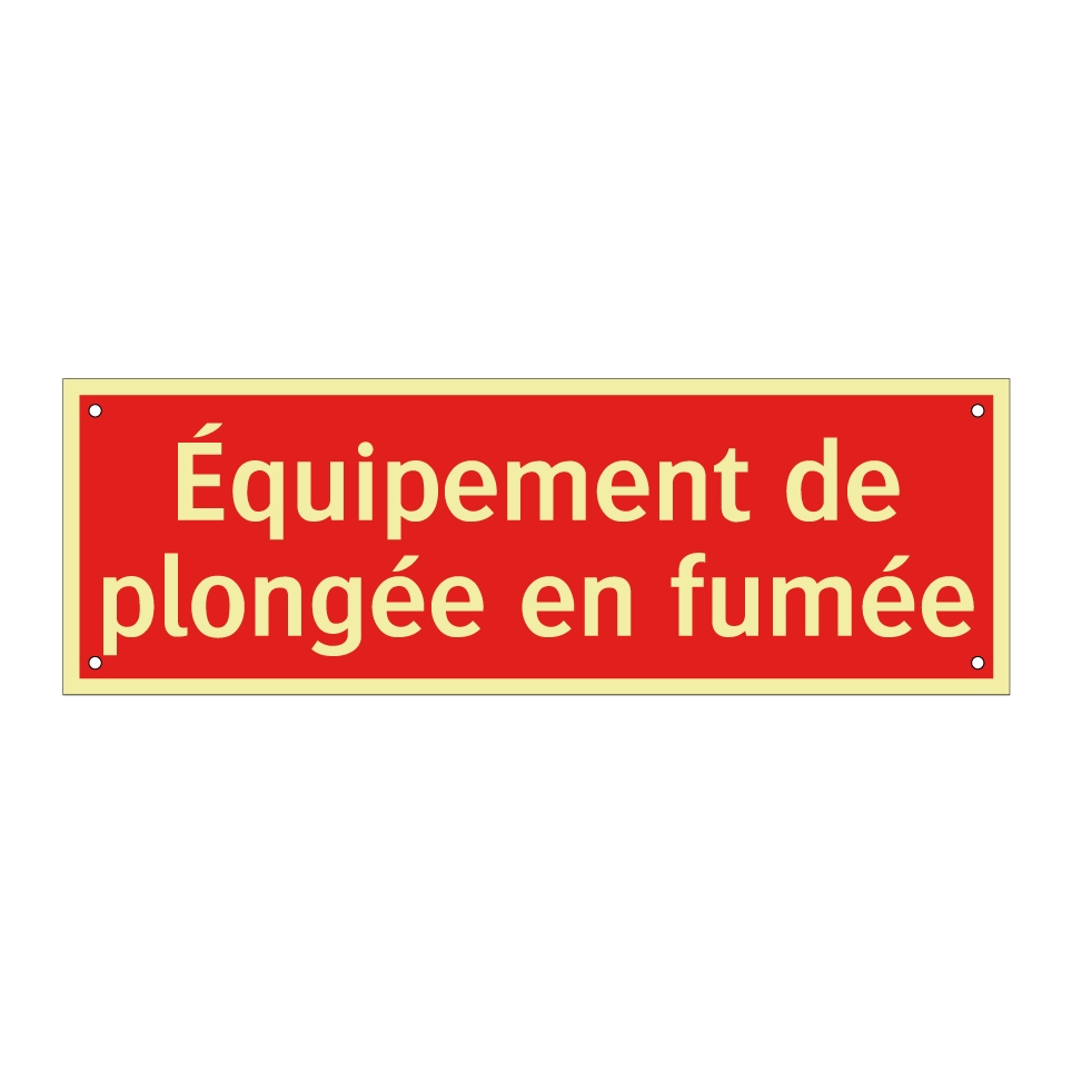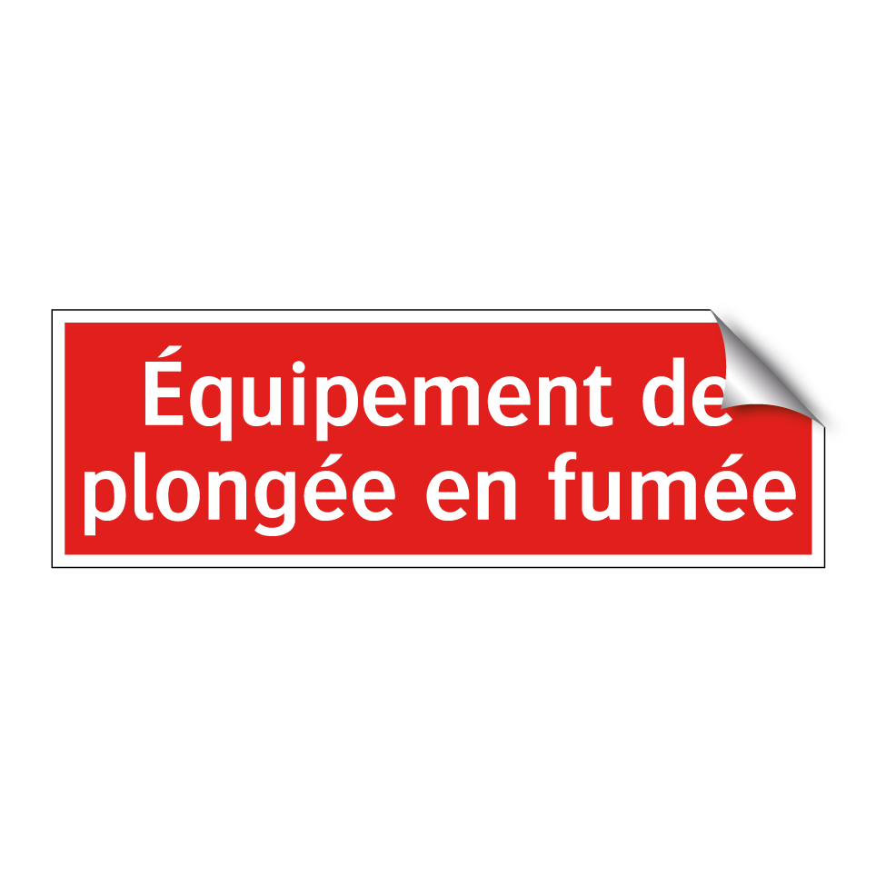 Panneau de signalisation incendie avec le texte Équipement de plongée en fumée
