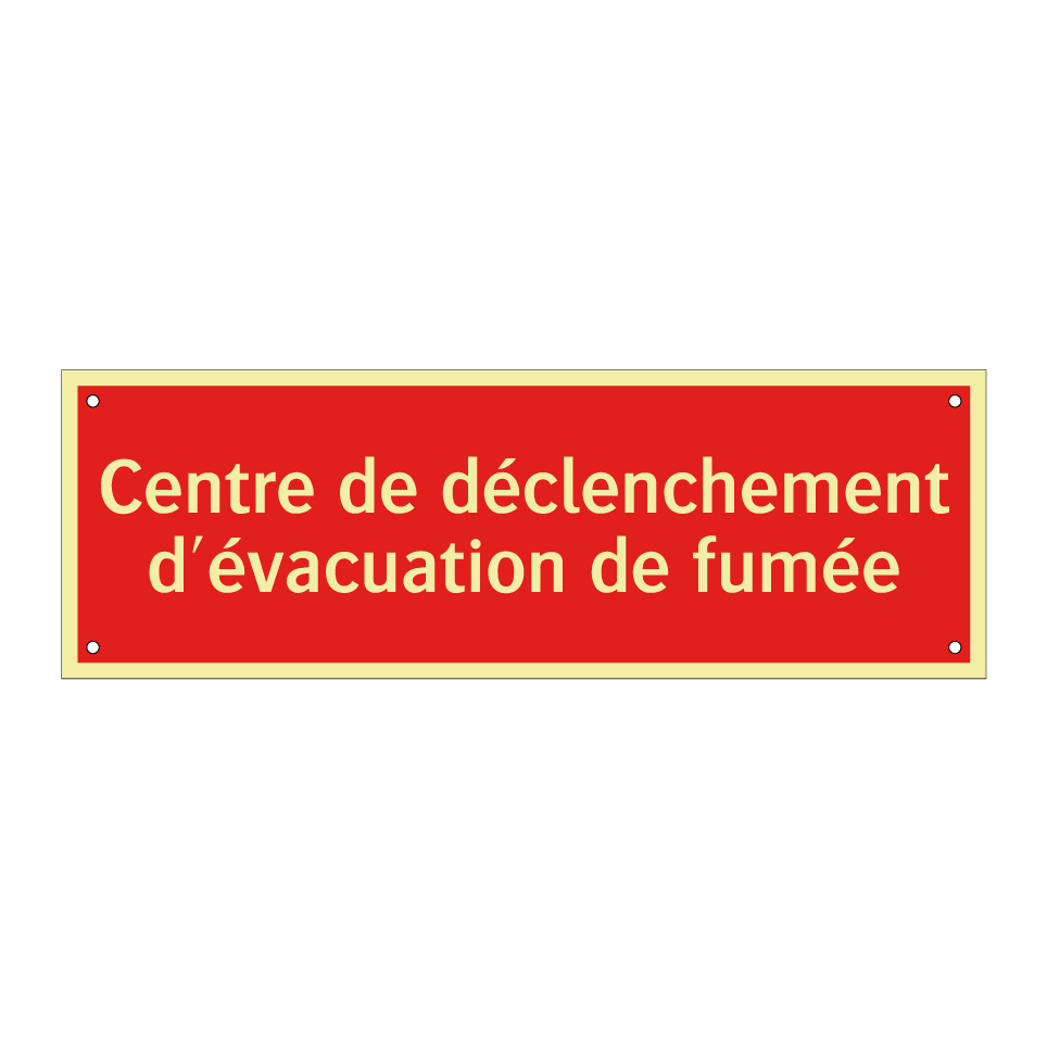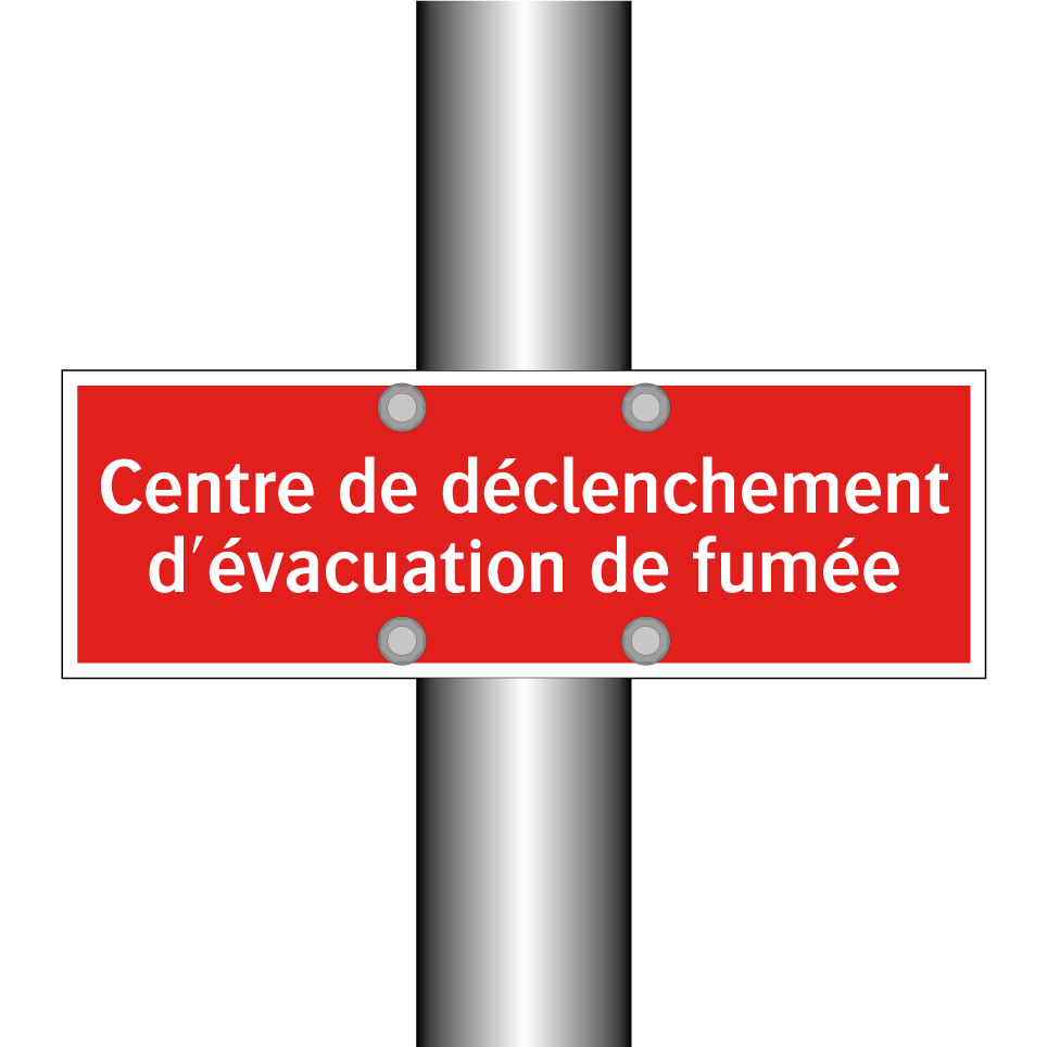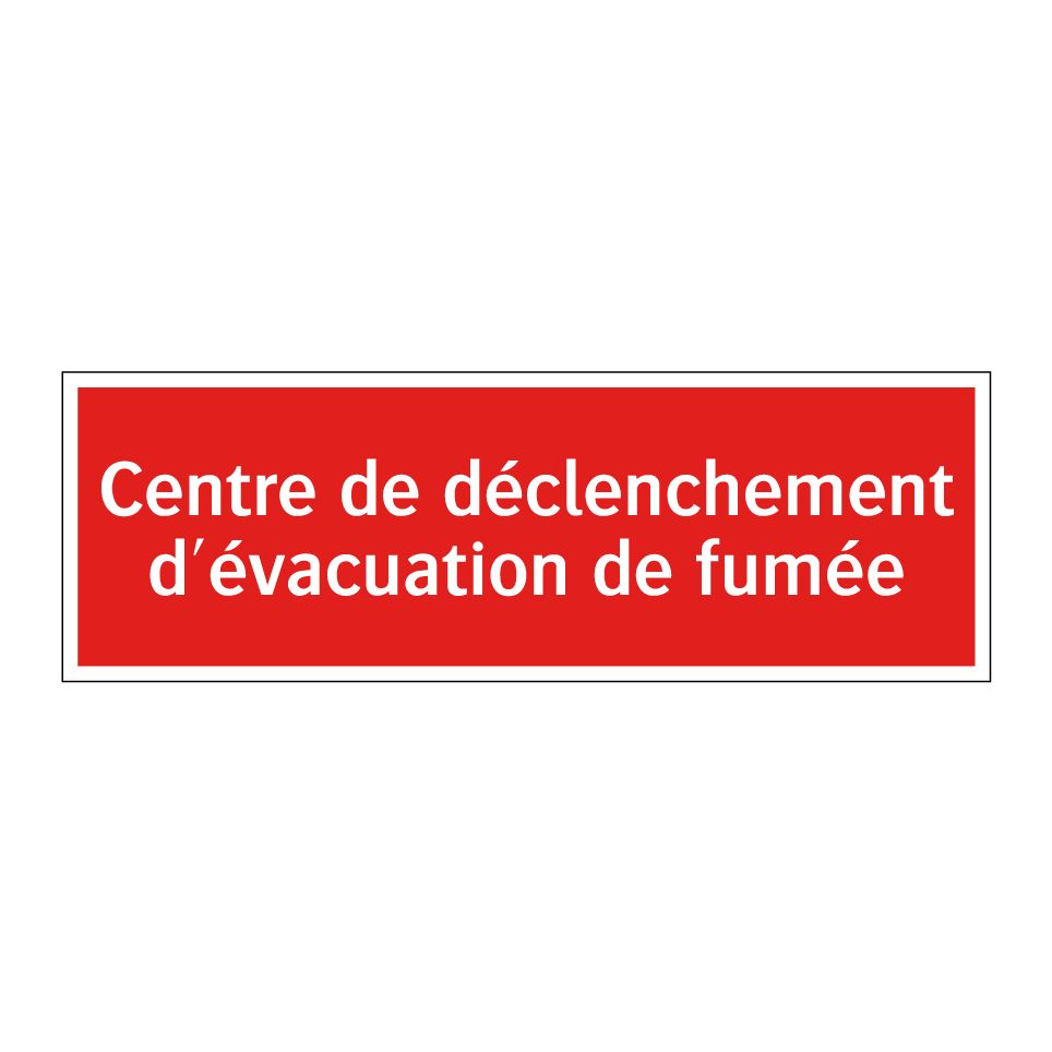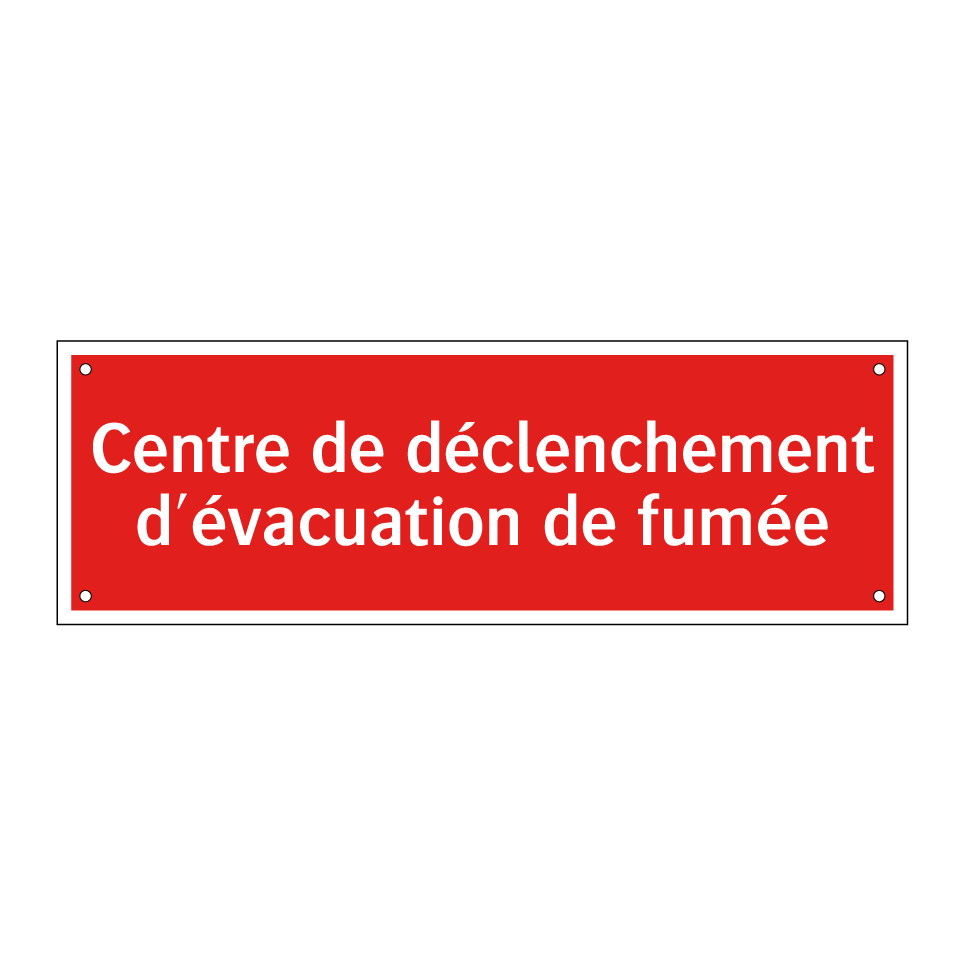 Panneau de signalisation incendie avec le texte Centre de déclenchement d'évacuation de fumée