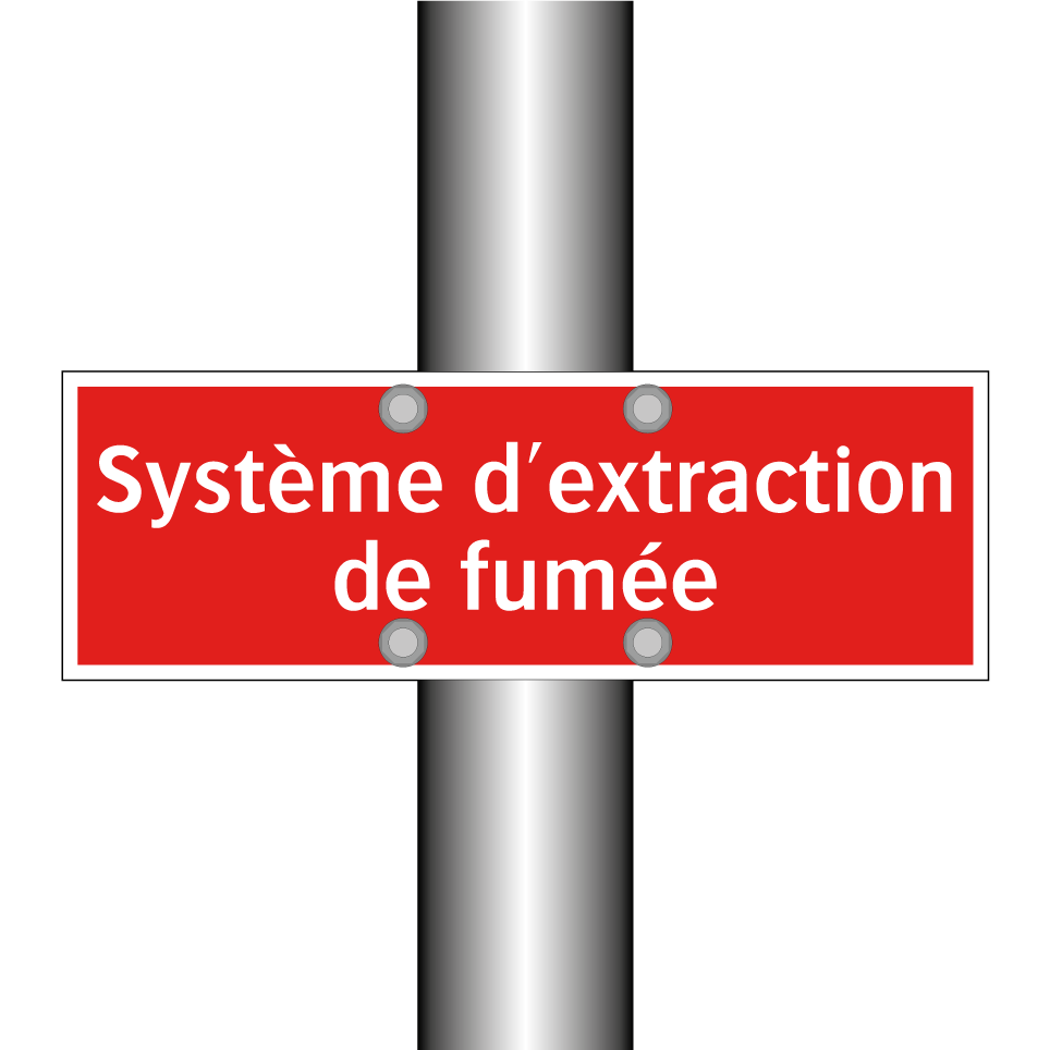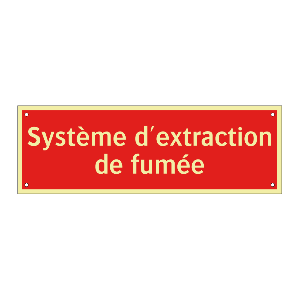 Panneau de signalisation incendie avec le texte Système d'extraction de fumée