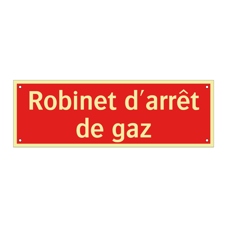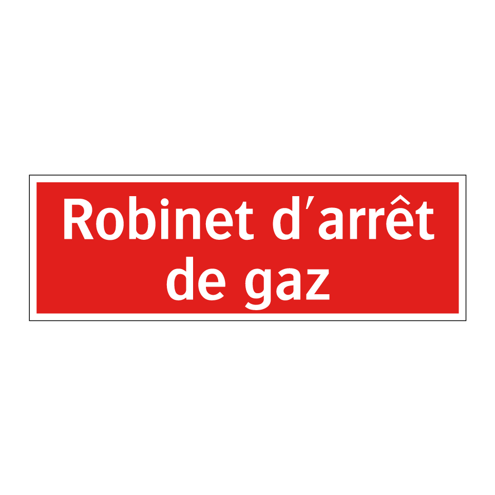 Panneau de signalisation incendie avec le texte Robinet d'arrêt de gaz
