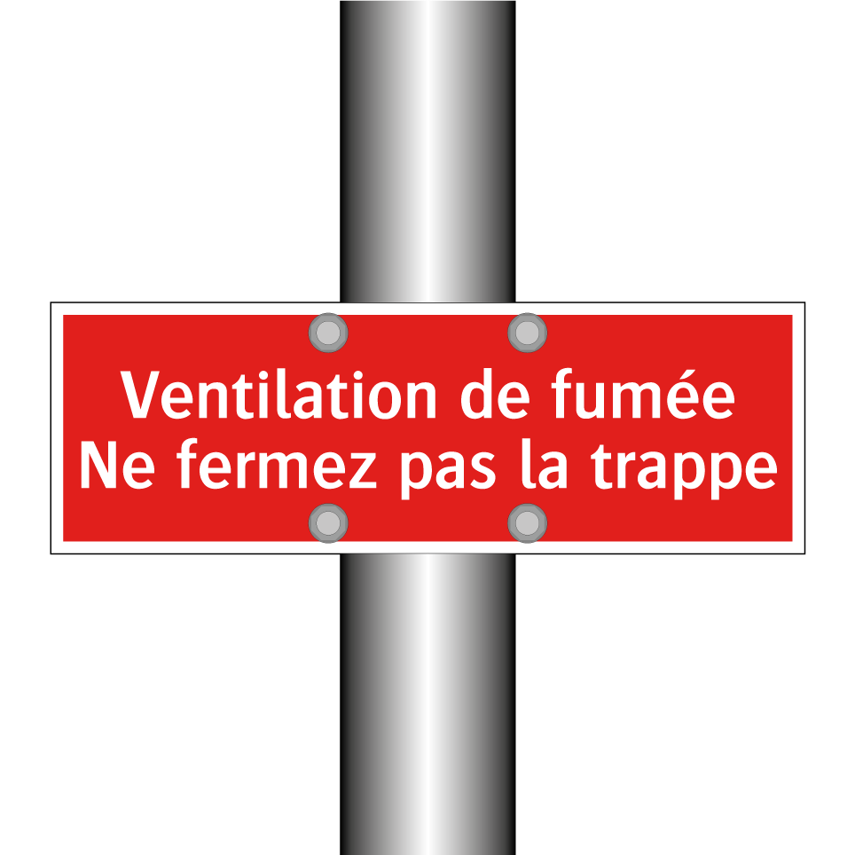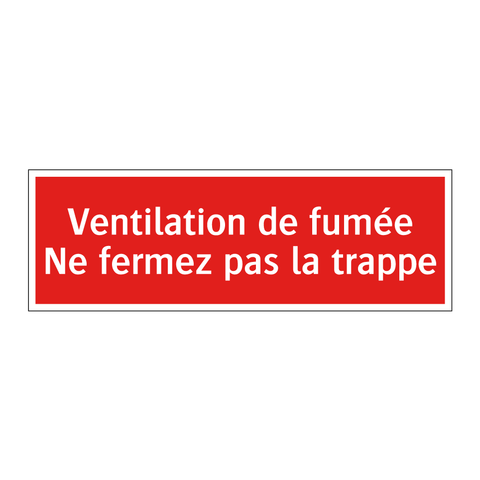 Panneau de signalisation incendie avec le texte Ventilation de fumée Ne fermez pas la trappe