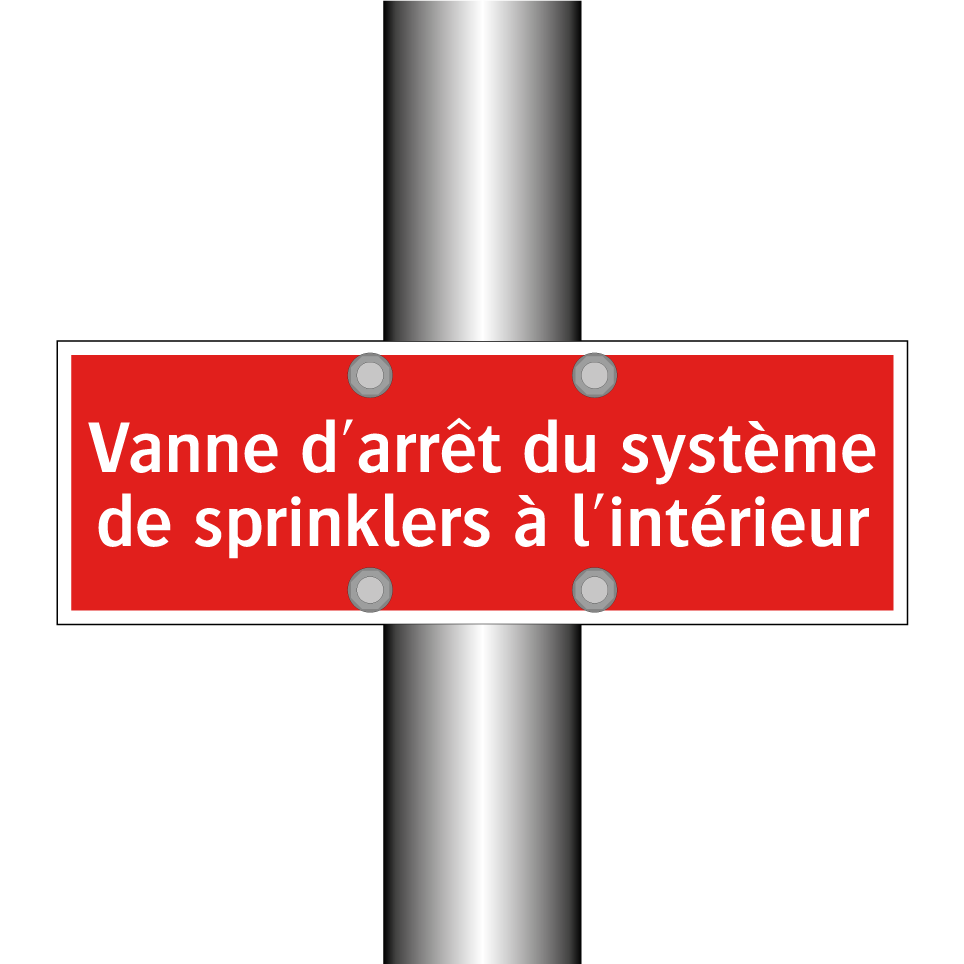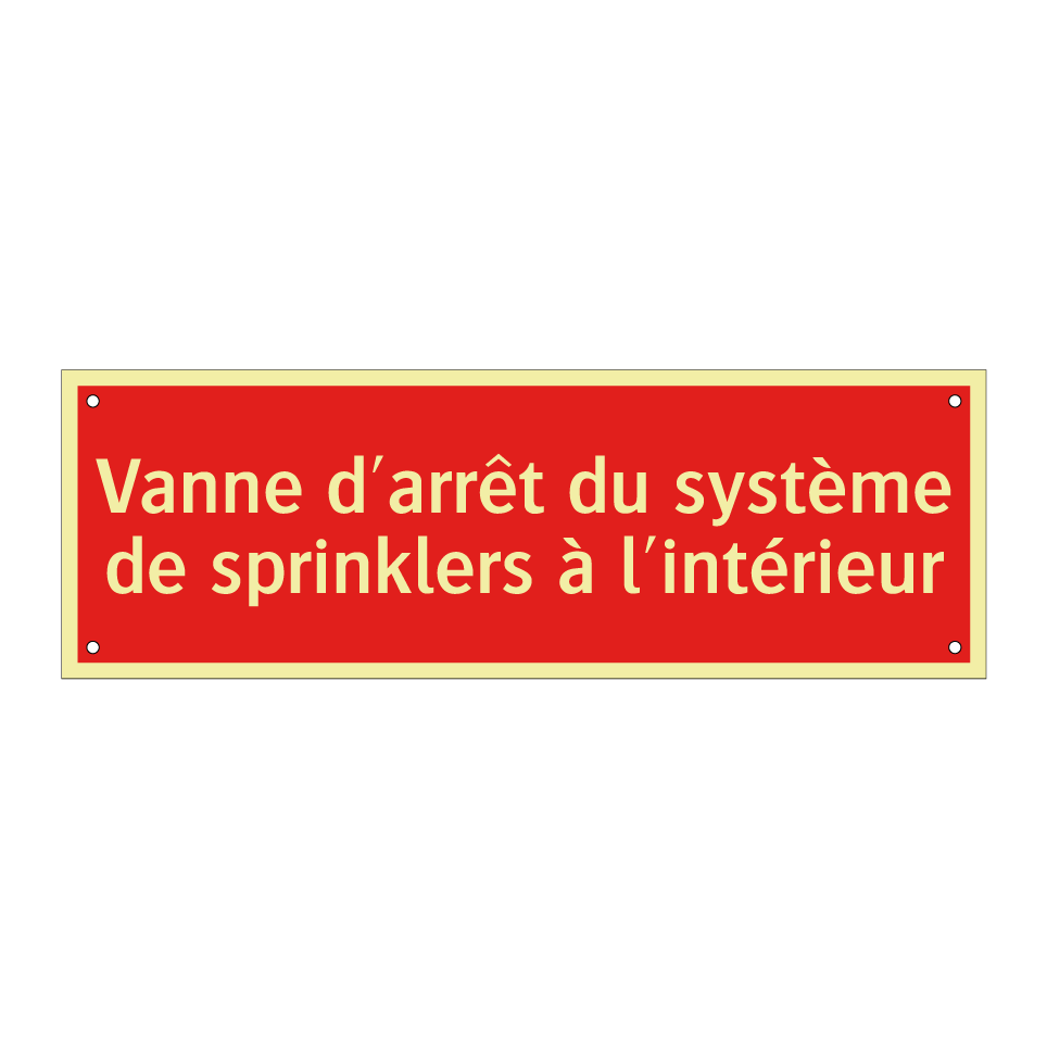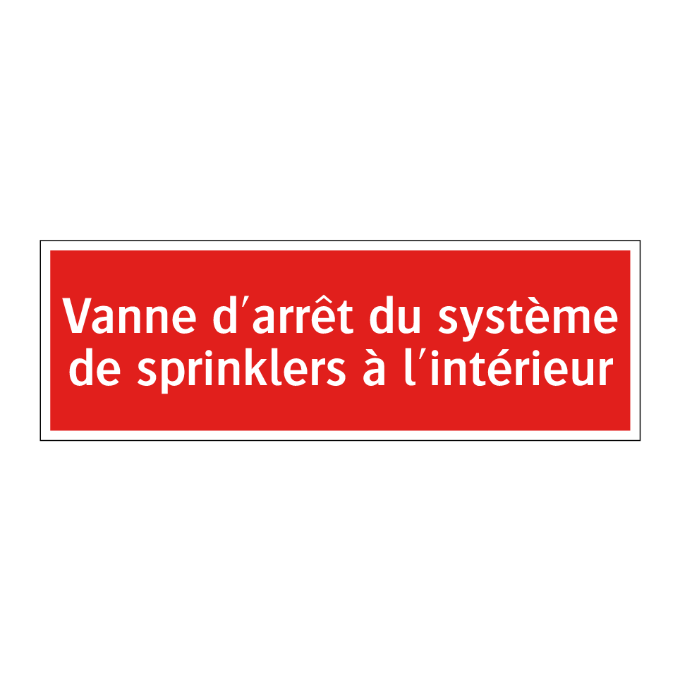 Panneau de signalisation incendie avec le texte Vanne d'arrêt du système de sprinklers à l'intérieur