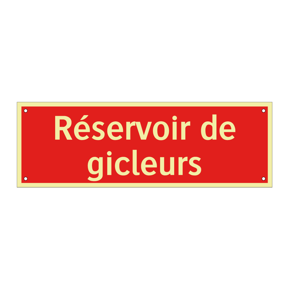 Panneau de signalisation incendie avec le texte Réservoir de gicleurs
