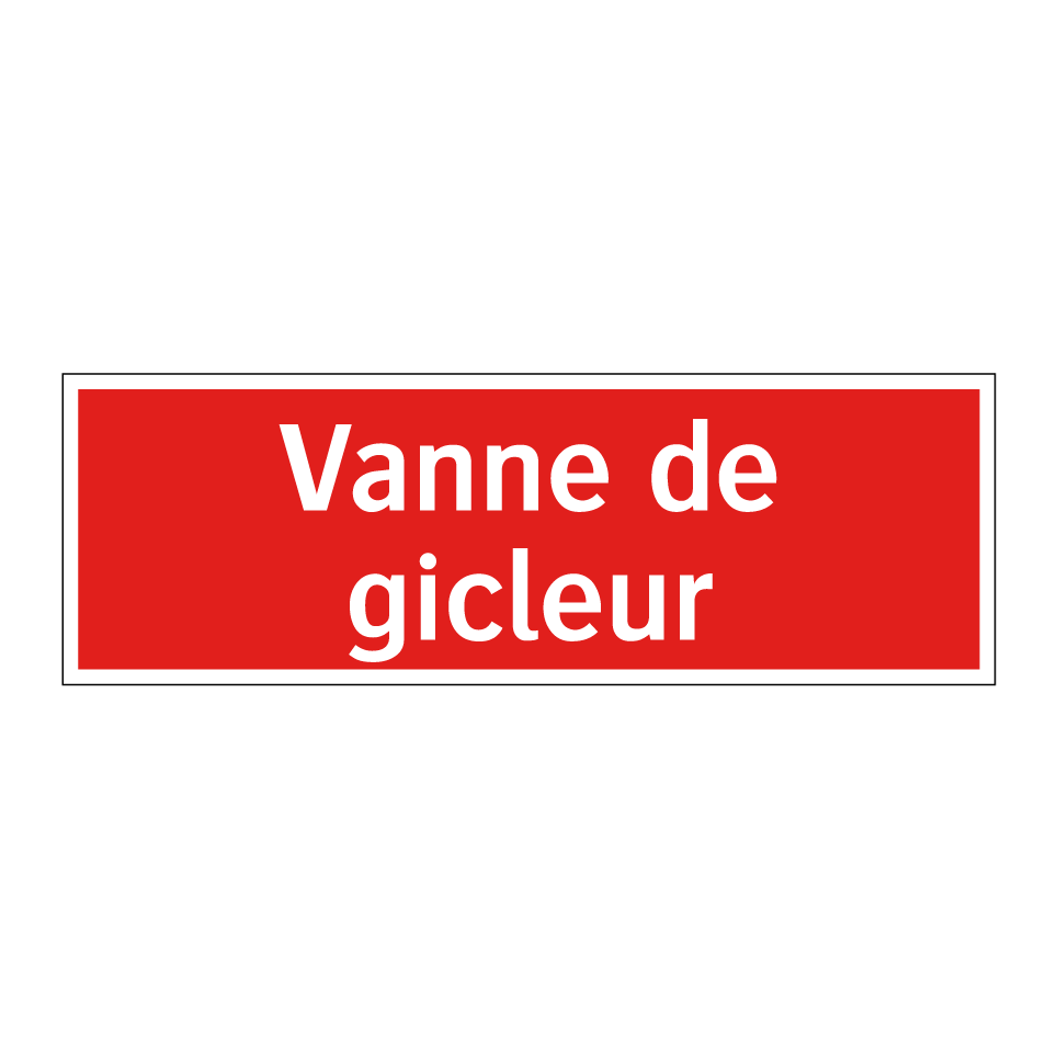 Panneau de signalisation incendie avec le texte Vanne de gicleur